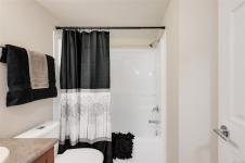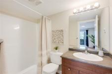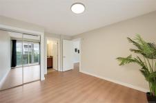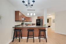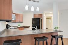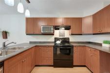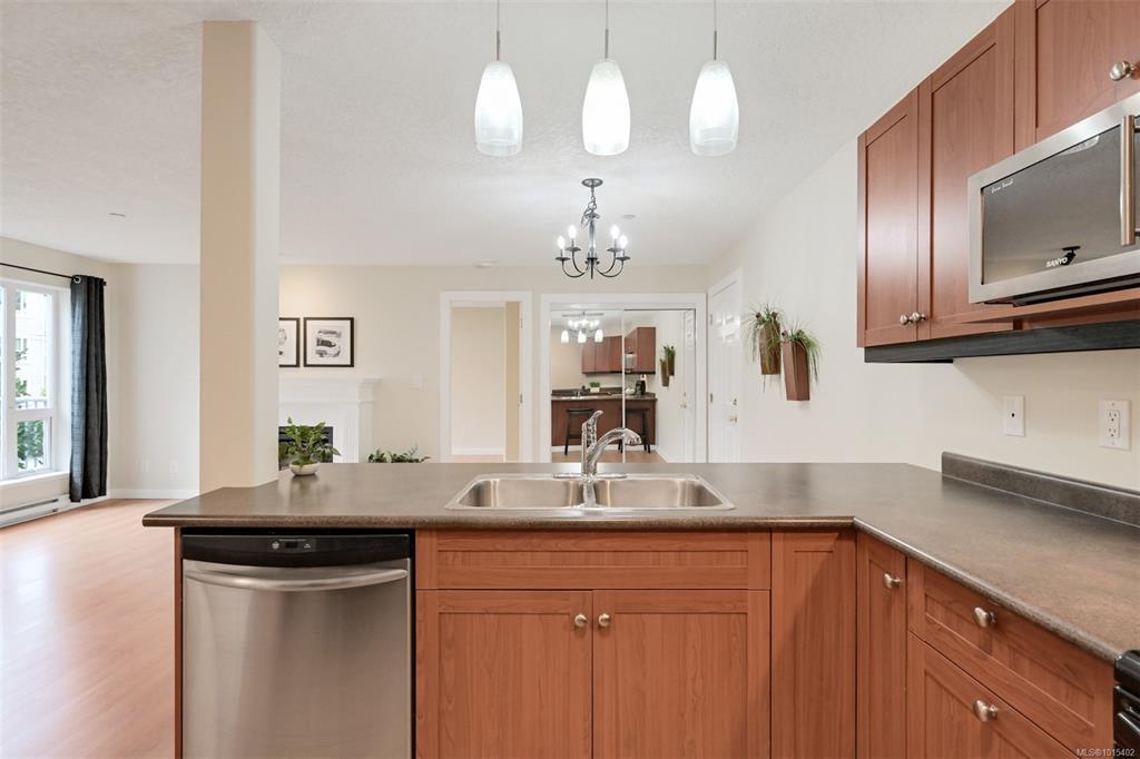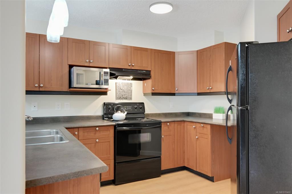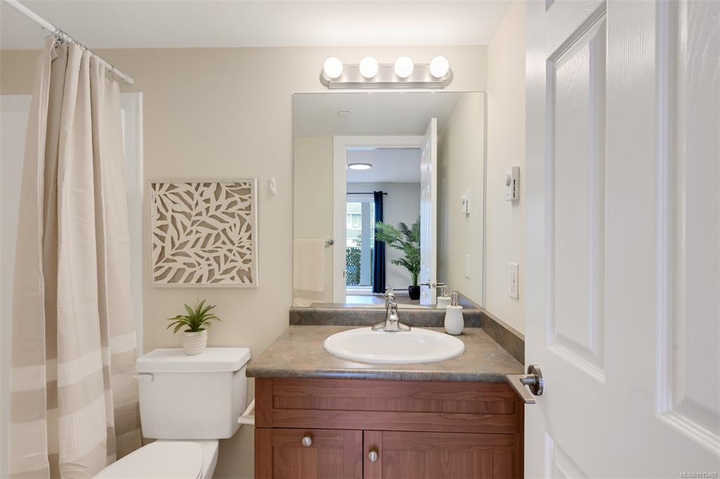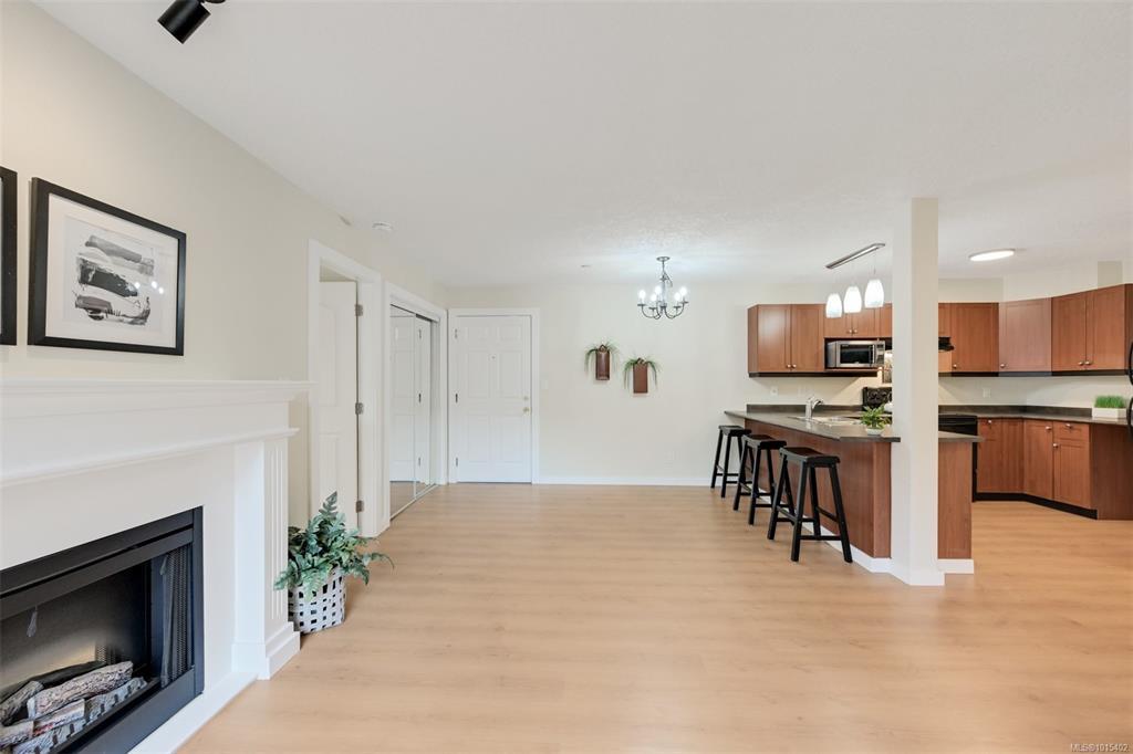 Quiet, bright & west facing 2 BR & 2 full BA condo will eventually be backing onto Langford’s new 6-acre park acquisition. Close to highway access, so traffic is pretty easy from here. Ruth King Elementary School is pretty much on the block. #201 offers a spacious open floor plan with bedrooms on opposite ends, each coupled with their own 4-piece bath. Perfect for a family home or roommate opportunity. So close to new U-Vic Campus! 5-minute walk? New paint & most light fixtures. A past update included newer laminate flooring. The primary bedroom has a 4-piece ensuite bath & the access to the covered deck. Unusually large kitchen with 3-4 bar-stool spots at the open countertop bar, where the friends & family will gather & certainly please the household chef. Stacking washer & drier are within a closet beside the main bathroom. 2 dogs – no pound limit are welcome, (or 2 cats or 1 of each), no age restrictions, BBQ’s are approved. Unrestricted rentals at this well managed strata. Hurry!