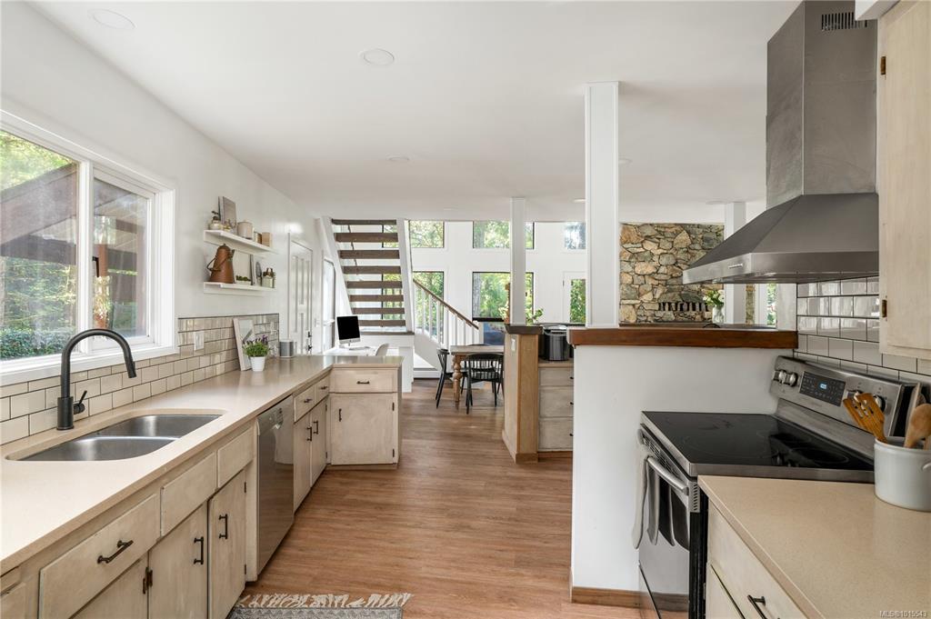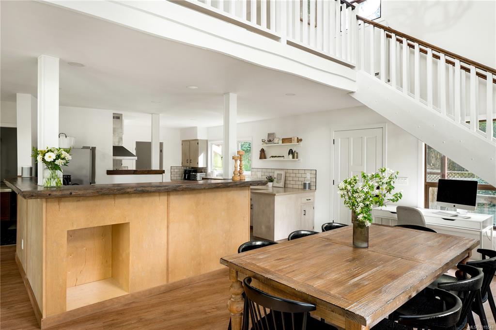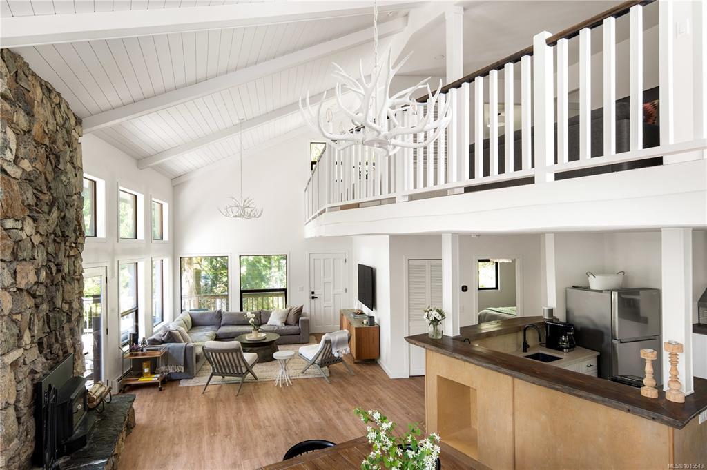 This beautifully updated 4-bedroom, 2-bathroom custom home sits on a generous 0.41-acre lot on the sunny side of Shawnigan Lake’s desirable West Arm. Just one house off the water, this property offers convenient public laneway access to the lake, perfect for swimming, paddleboarding, soaking up the sun.Ideal for families, investors, or anyone seeking a peaceful lakeside lifestyle. Inside, the main floor features the spacious primary bedroom, a bright open-concept living area with soaring 18-foot vaulted ceilings and a cozy wood-burning fireplace. Upstairs you’ll find two additional bedrooms and a full bathroom, with views overlooking the main living space and glimpses of the lake beyond. The double garage, expansive freshly landscaped and fenced yard, and oversized deck provide ample space for outdoor living and entertaining. There’s no shortage of room for your RVs, boats, or recreational vehicles. Book your private showing today and start living your lake life dream!