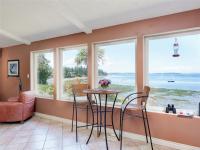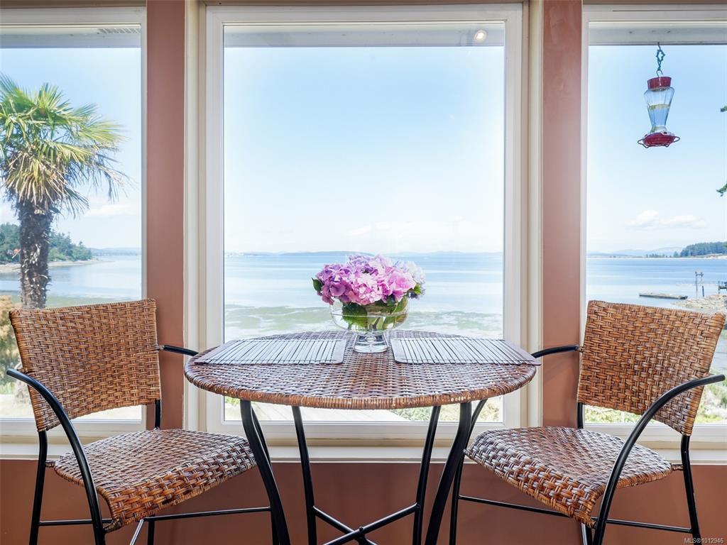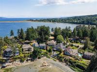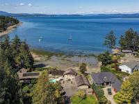 OCEAN FRONT PROPERTY WITH STUNNING PANORAMIC VIEWS. Tucked away on a dead end street, on a large private lot there's an opportunity for you to build your dream home or update existing home. 5 bed, 4 bath home with vaulted ceilings & large picture windows to enjoy the breathtaking 180deg views. Upper has 3 beds & 2 baths, primary bed opens to a balcony with a view. Featuring a large kitchen with adjacent dining/living room. Lower level offers a large family room, rec room/studio, plenty of storage, 2 additional beds & 2 baths. Double garage has a convenient 3 pc bath. Outside, enjoy countless hours lounging by the pool (heated by sun) on the patio. Easy access to the sandy & pebble beach down the steps to beachcomb until your hearts desire. Fishing, boating, kayaking from your own backyard on beautiful Ferguson Cove with views of James Island & lights of Sidney. Public dock 100m away for crabbing & prawning. Parking for RV or boat.
