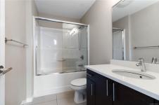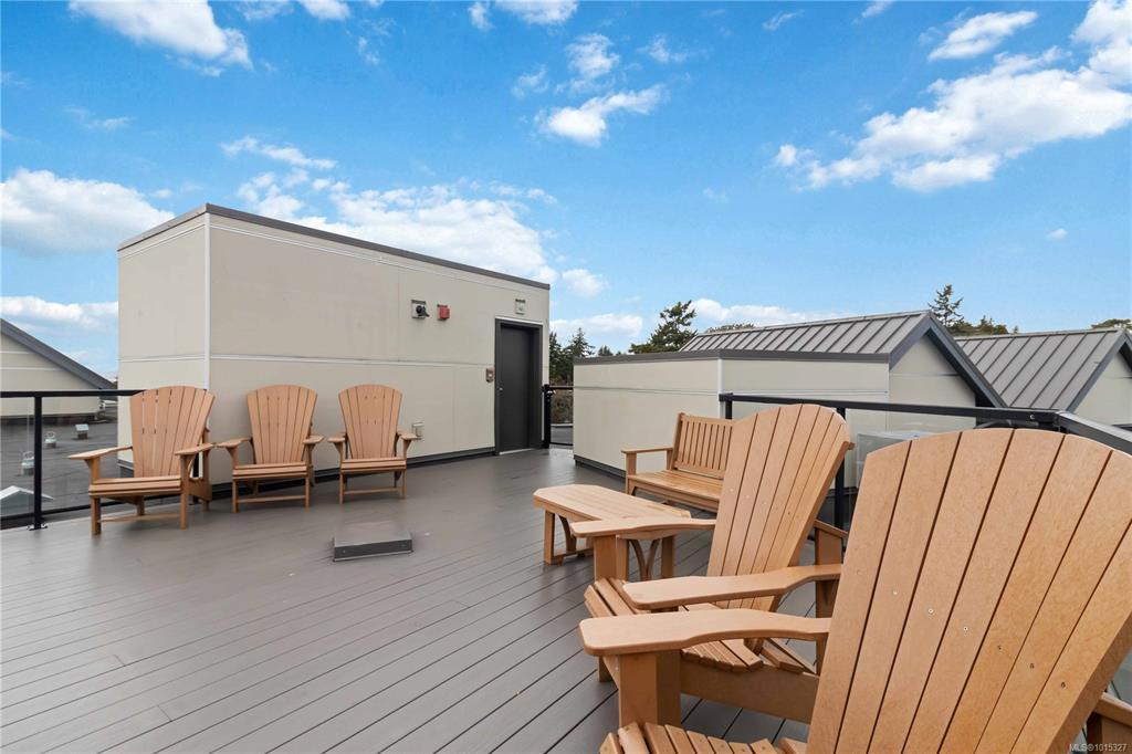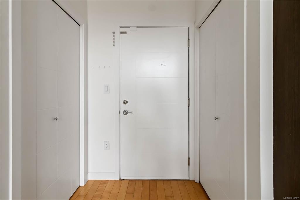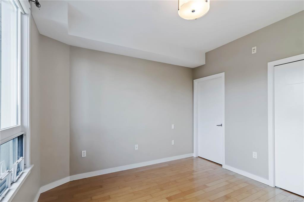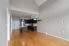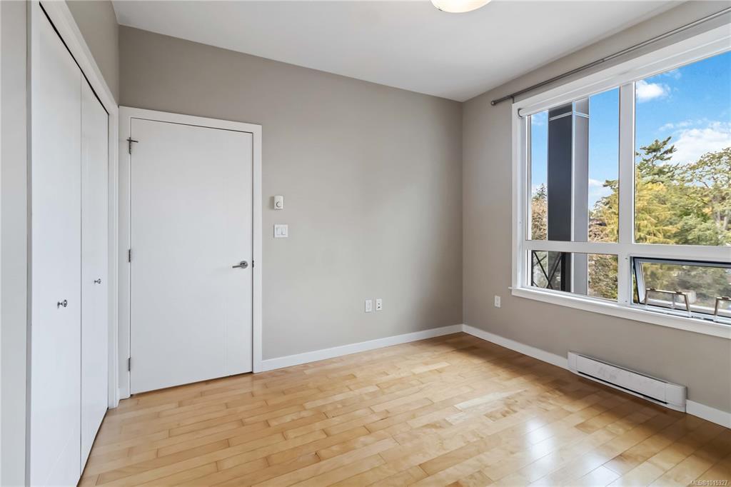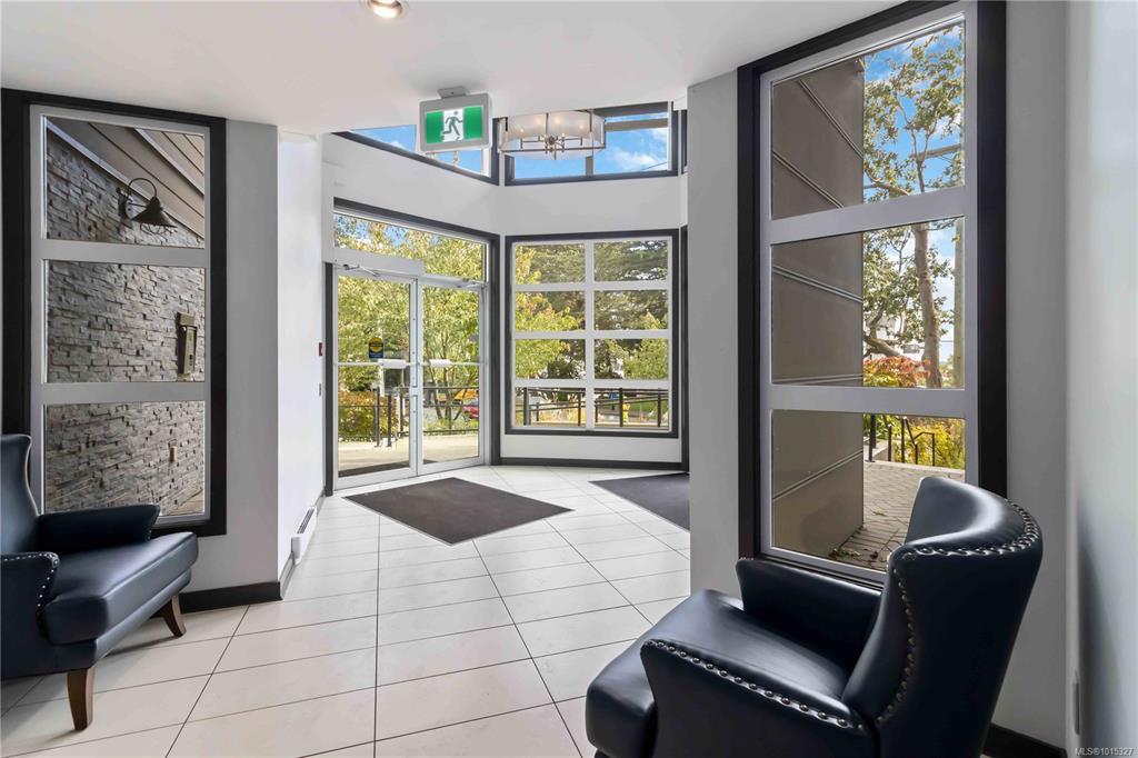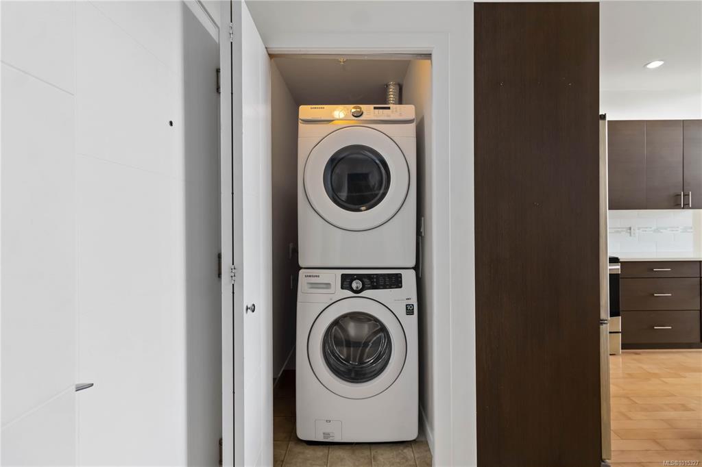 Soaring above buildings and treetops is this beautiful 2 bedroom, top floor unit in Skyline Residences. This condo is uniquely designed and offers a wonderful open-concept floor plan with modern kitchen, quartz countertops, stainless steel appliances and kitchen island which blends modern living with functionality. Natural light pours through the floor to ceilings windows in the living room featuring 16ft vaulted ceilings. Large primary bedroom with an abundance of light with ensuite, second bedroom with second bathroom and laundry round out this well designed condo. Located on the quiet side of the building and including secured underground parking spot as well as a storage locker. Bonus - roof top patio with inner harbour views for your enjoyment with a location that is perfectly located just minutes to downtown Victoria, shops, parks, military base, école Victor-Brodeur and buses. Rentals permitted and pets allowed! Vacant with quick possession!