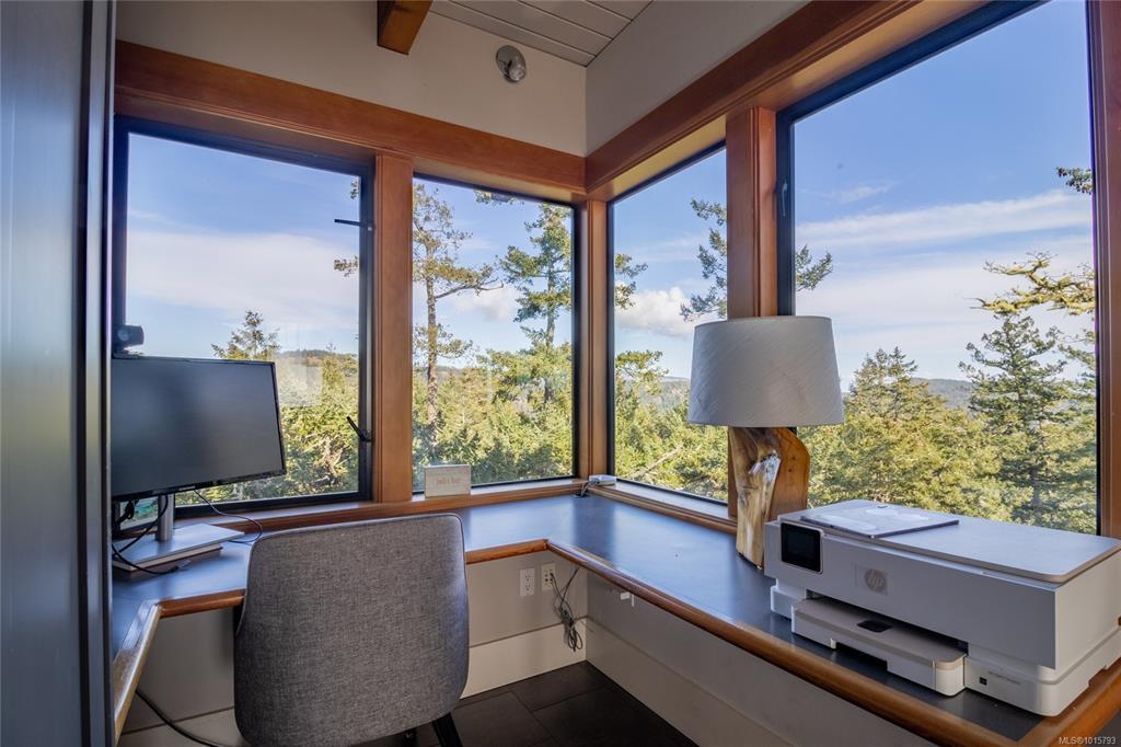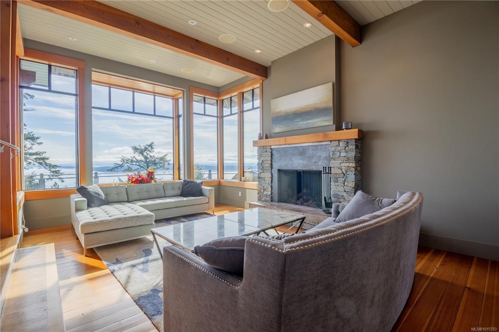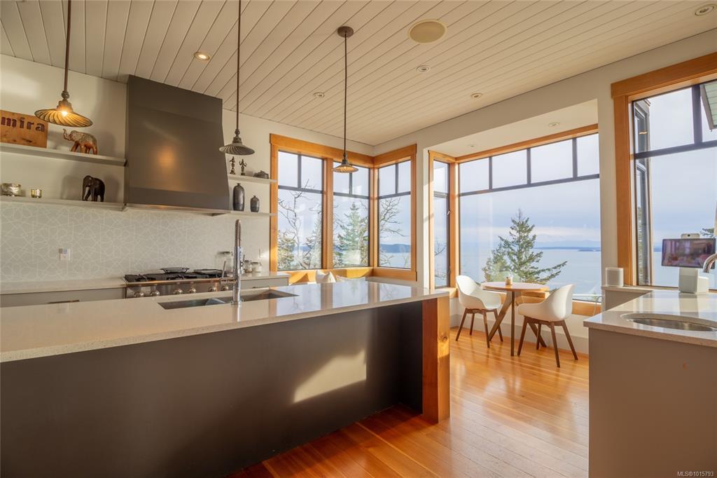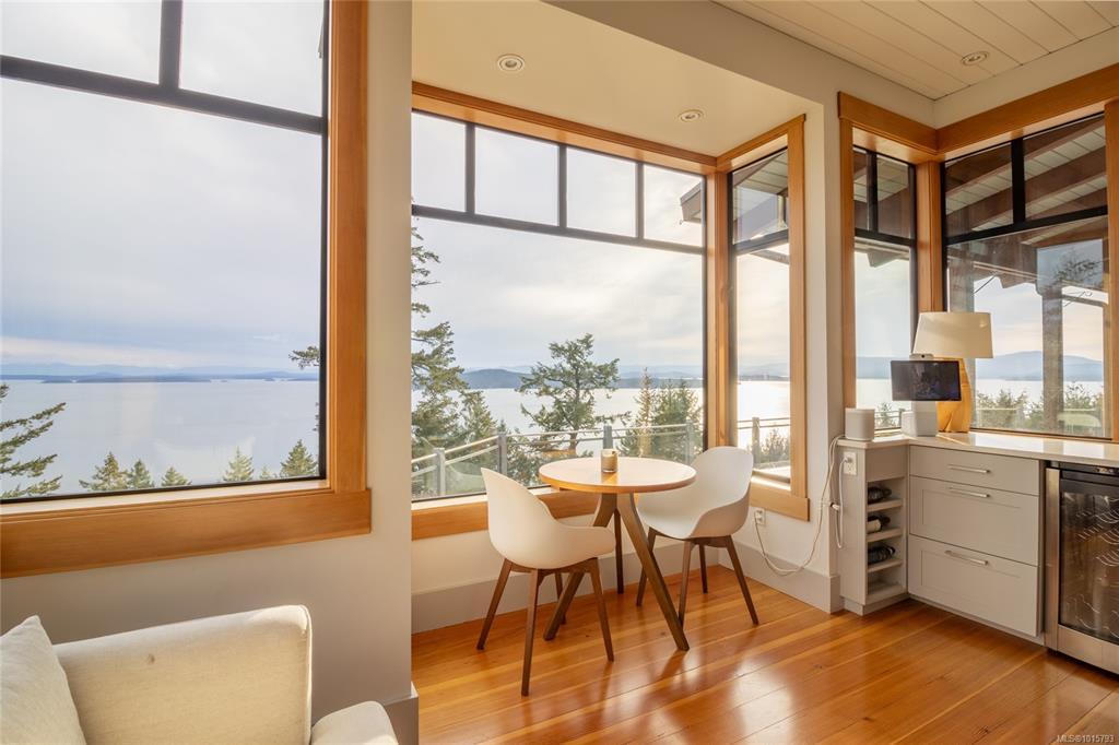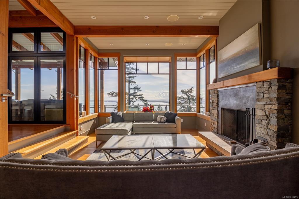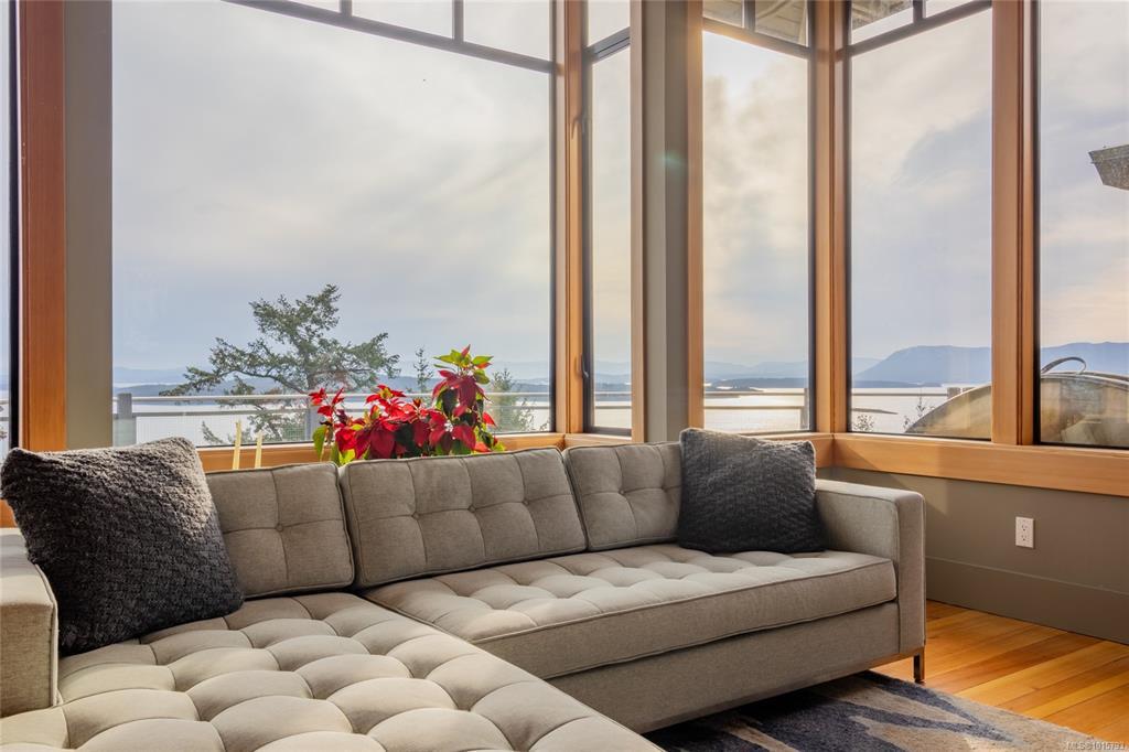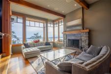 Elevate your lifestyle! Simply stunning custom-built oceanfront estate, perched majestically on 10 acres of pristine land. Breathtaking 270-degree views, stretching across the Gulf & San Juan Islands, Victoria, the Olympic Mountains & beyond! A true sanctuary for those who appreciate natural beauty. Spanning an impressive 3,264 sqft, the main house seamlessly blends modern elegance with artistic sophistication, adorned with rich details that reflect a refined taste for design. The gourmet kitchen is a chef's dream featuring high-end appliances. The open plan design flows into an expansive dining area. Lucky guests will marvel at the awe-inspiring vistas, where eagles soar & whales breach below. Step outside to discover your private oasis featuring a stainless steel hot tub. The master BR serves as your personal retreat in the clouds, complete with luxurious soaker tub & private balcony. The exquisite 760 sqft cottage is ideal for guests or as an inspiring workspace. Paradise Found!