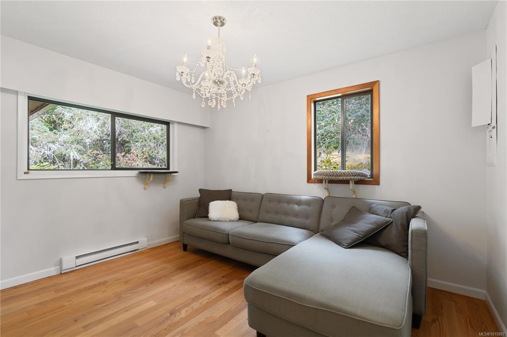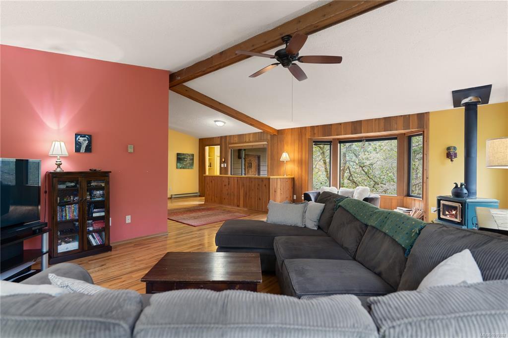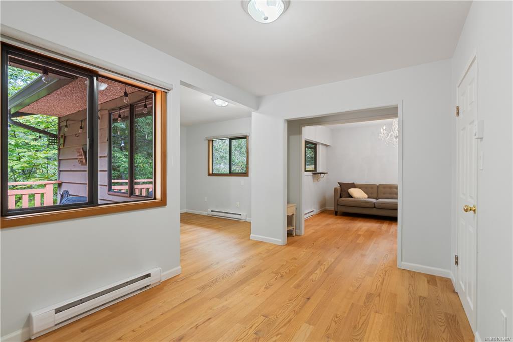 The natural beauty & serenity of your surroundings envelop you and you can feel & smell nature; yet you are a mere fifteen minutes to town. Leave your cares behind when you come home to this post and beam style home with updated kitchen, hardwood floors, terra cotta tile in the kitchen & family room, wood stove, 4 bedrooms & a family room on the main plus a 5th bedroom & an office down. Every room looks out to your beautiful & natural wooded 2.7 acres. This home has been well maintained and presents a beautiful turn key space perfect for families or those seeking peaceful convenient living. Recent updates include exterior paint and siding, metal roof, refinished and painted deck, infloor radiant heating, and well maintained garden area ready for your fruits and veggies. There is a separate workshop. Prospect Lake & Francis King Park are just seconds away yet it is an easy commute to town & U Vic, Victoria General Hospital & Royal Roads College and all amenities.