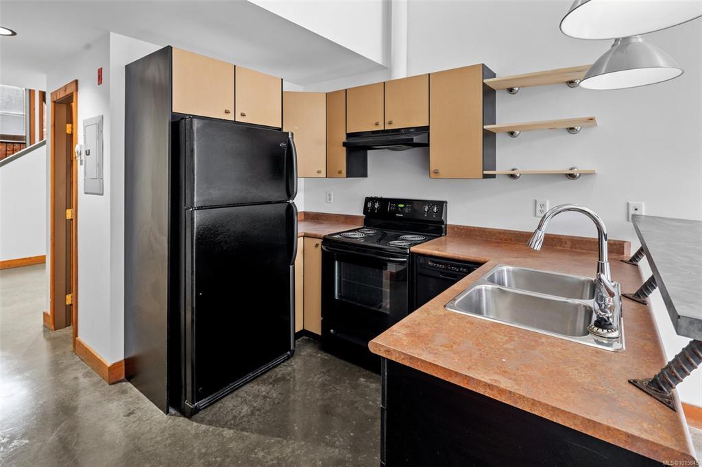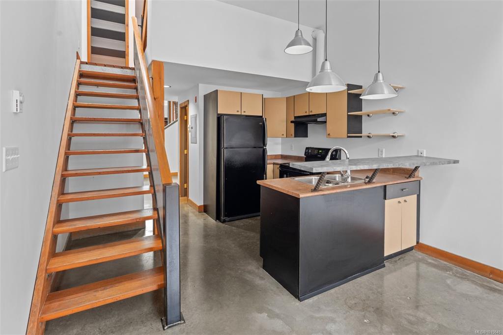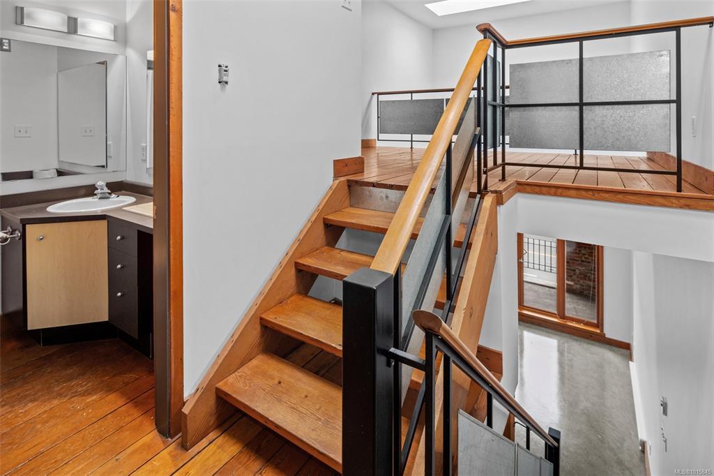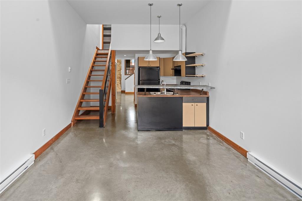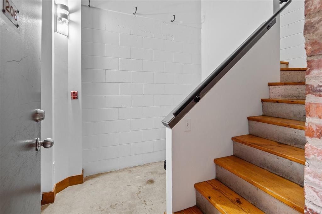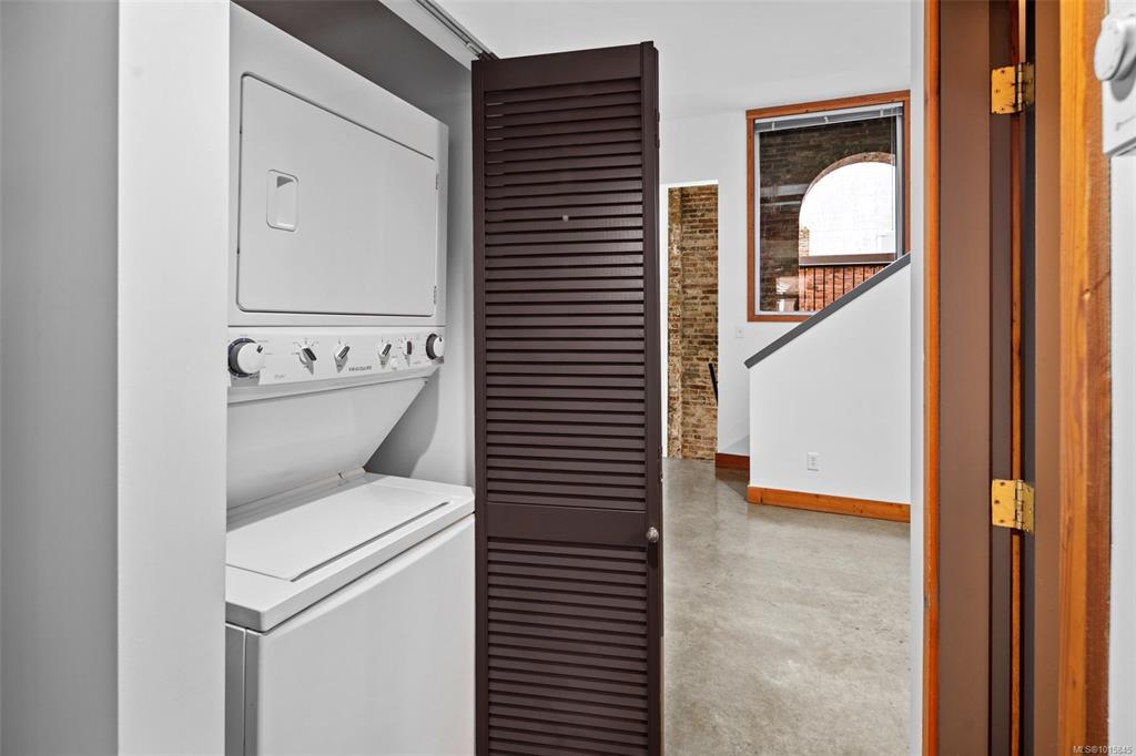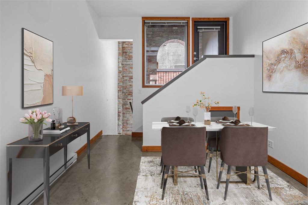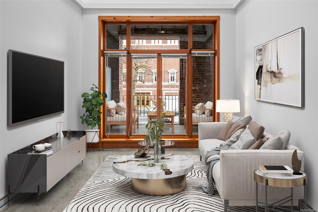 Welcome to the iconic Kinemacolour Heritage Building—where historic charm meets modern urban style. This distinctive townhome blends timeless character with an industrial-chic aesthetic. Featuring two spacious bedrooms and two bathrooms, the open-concept main level is defined by an impressive 20ft vaulted ceiling, creating a bright, airy atmosphere ideal for relaxing or entertaining. Enjoy two private balconies, one offering a quiet retreat overlooking the secure, gated alleyway; the other showcasing lively views of Chinatown and Government Street. Original exposed brick adds warmth and sophistication to the loft’s contemporary edge. Zoned for work/live use, this unique space provides the flexibility to operate your business from home. Two units are available, both tenanted. Photos are of a similar unit and have been virtually staged—book your private showing to see how Unit 203 stands out.