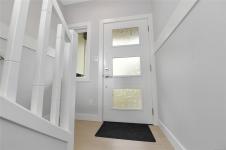 Welcome to The Slopes! Discover the perfect blend of style, comfort, and versatility in this beautifully designed 3-bedroom townhome in Happy Valley, where modern finishes and thoughtful upgrades create a truly elevated living experience. With 9’ ceilings on the main level, oversized windows, and an open-concept layout, the space feels bright and inviting, complemented by wide plank flooring and a sleek electric fireplace. EV charger installed in garage, heat pump, and on-demand hot water ensure comfort and efficiency! The chef-inspired kitchen boasts quartz countertops, tile backsplash, under-cabinet lighting, and stainless steel appliances. The south facing deck has steps down to a fully fenced yard with low maintenance turf. Upstairs is the vaulted-ceiling primary bedroom complete with a spa-like ensuite with floating vanity and motion lighting, additional bedroom, the washer/dryer and 3-piece washroom. The downstairs bedroom adds flexibility with direct access to the backyard!