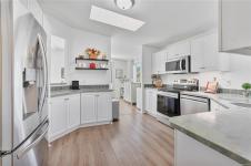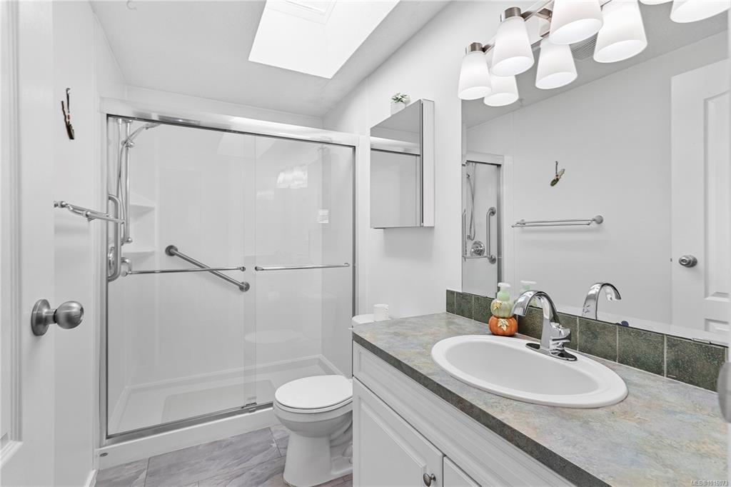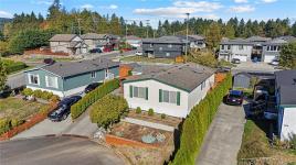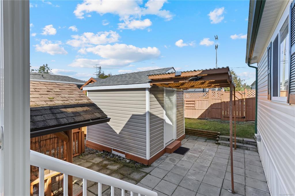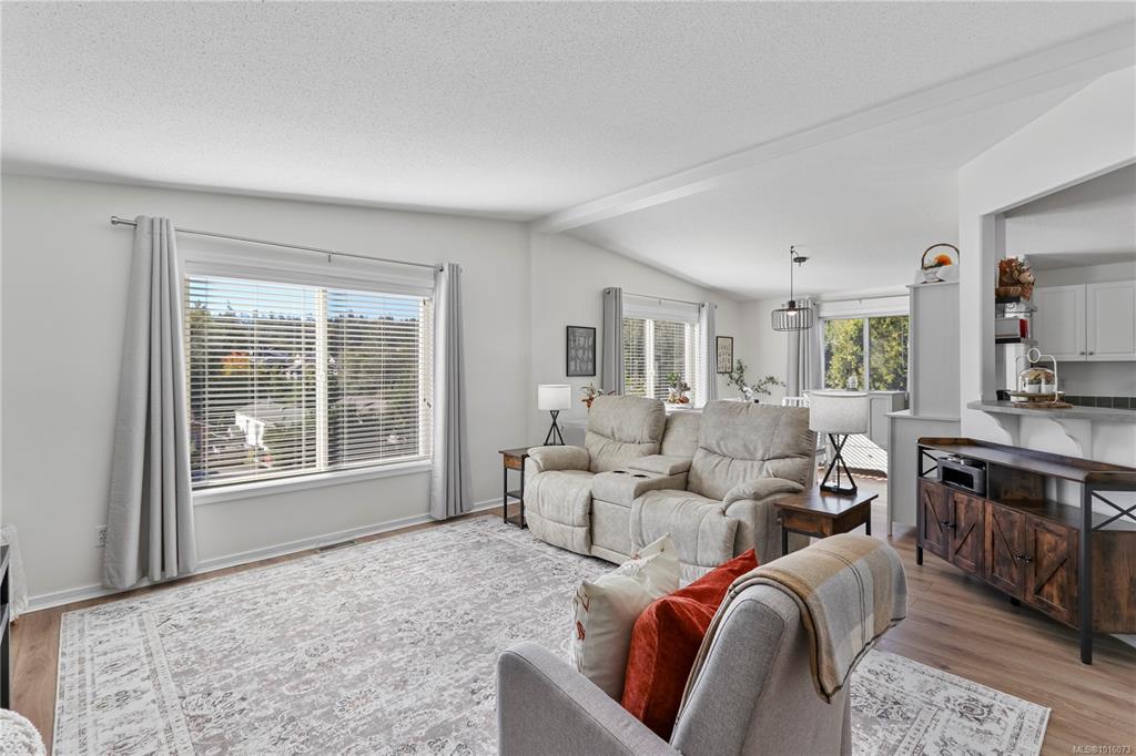 Bright, spacious & impeccably maintained, this home features a private setting with mature landscaping, patio area, cabana/tiki hut, workshop & space for gardens. Inside, the home feels open & airy with a spacious living & dining area, large windows, two skylights, & heat pump for efficient heating & cooling. The kitchen showcases stylish white cabinetry, stainless steel appliances including a new dishwasher, & newer flooring. The primary bedroom includes a 4-pce ensuite, while the 2nd bedroom & den provide great flexibility. Updates include a new furnace and washer & dryer. Located in Meadow Ridge Estates, a well-managed park, this home offers a peaceful setting just minutes from groceries & amenities. Two small pets are welcome, & there’s a secure compound for RV or boat storage. Beautifully maintained & stylishly updated—come see for yourself what makes it such a special find!