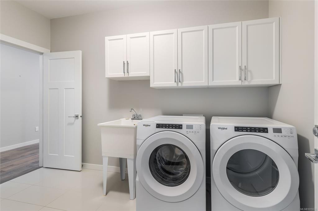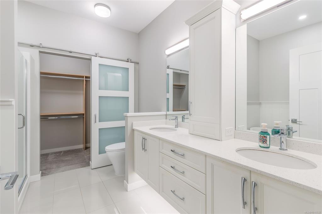 Welcome to this beautifully maintained 2 bedroom 2 bathroom patio home nestled in one of Nanaimo's most desirable communities, Emerald Woods. Step inside to find a spacious open-concept layout with natural light, featuring a stylish kitchen with quartz countertops, stainless steel appliances and a spacious island perfect for entertaining. The living area boasts a cozy gas fireplace and direct access to the private patio -a serene spot to enjoy your morning coffee. The primary suite offers a walk-in closet and luxurious ensuite with a walk-in shower, bowl style soaker tub and double vanity. A second bedroom and full bath provide flexibility for guests or home office/den. Additional highlights include a large laundry room area leading to the double garage. Located close to shopping, parks and walking trails, this move-in ready home combines convenience, comfort and modern design - all in a peaceful neighborhood. All measurements and data must be verified if important.