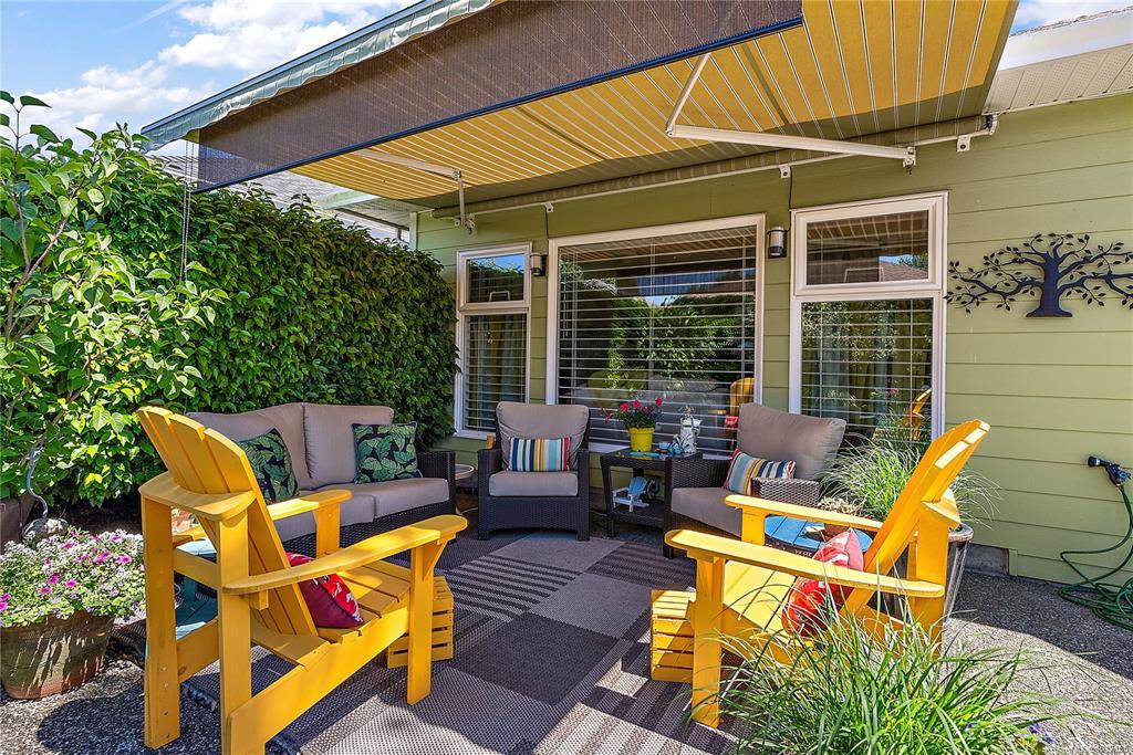 One-level living at its finest in the heart of sought-after Polo Park! This beautifully maintained & tastefully updated 2 bedrooms plus den, 2 bathroom rancher offers 1,610 square feet of thoughtfully designed living space. Featuring hardwood floors, French doors, a cozy gas fireplace & a central interior atrium that fills the home with natural light. The kitchen has been stylishly updated in 2024 and includes a charming breakfast nook, perfect for casual meals. Other highlights include air conditioning, an efficient sprinkler system, two beautifully renovated bathrooms, and a double garage. Step outside to an easy-care yard with a private patio and retractable awning—ideal for relaxing or entertaining. Located in a quiet, semi-rural area of Central Saanich, yet just minutes to shops, transit, and all amenities in Saanichton. A perfect home for downsizers or retirees looking for comfort, quality & convenience in a peaceful community.