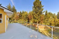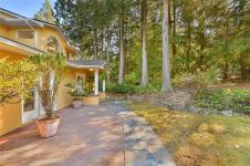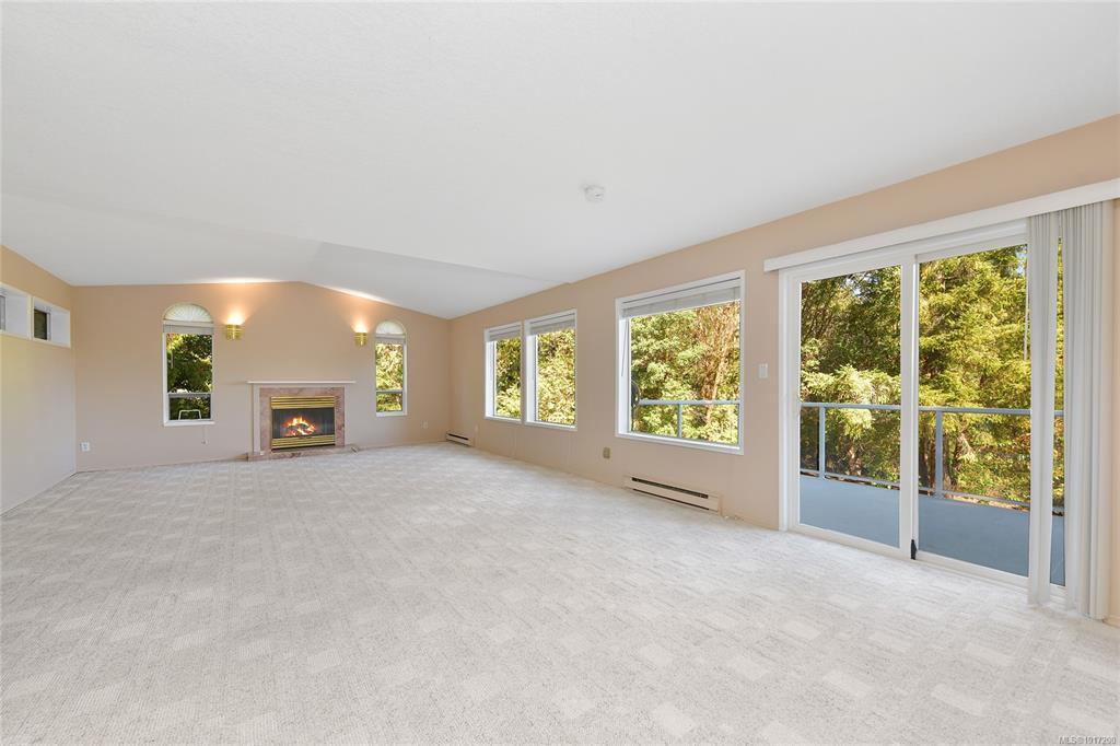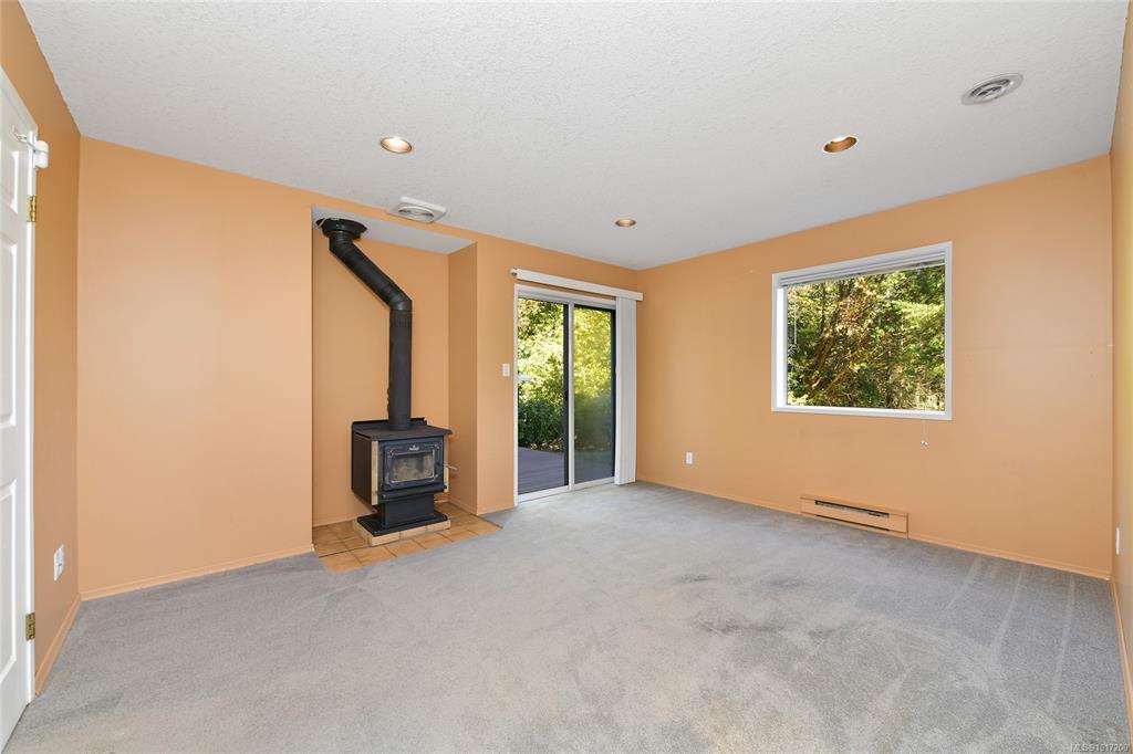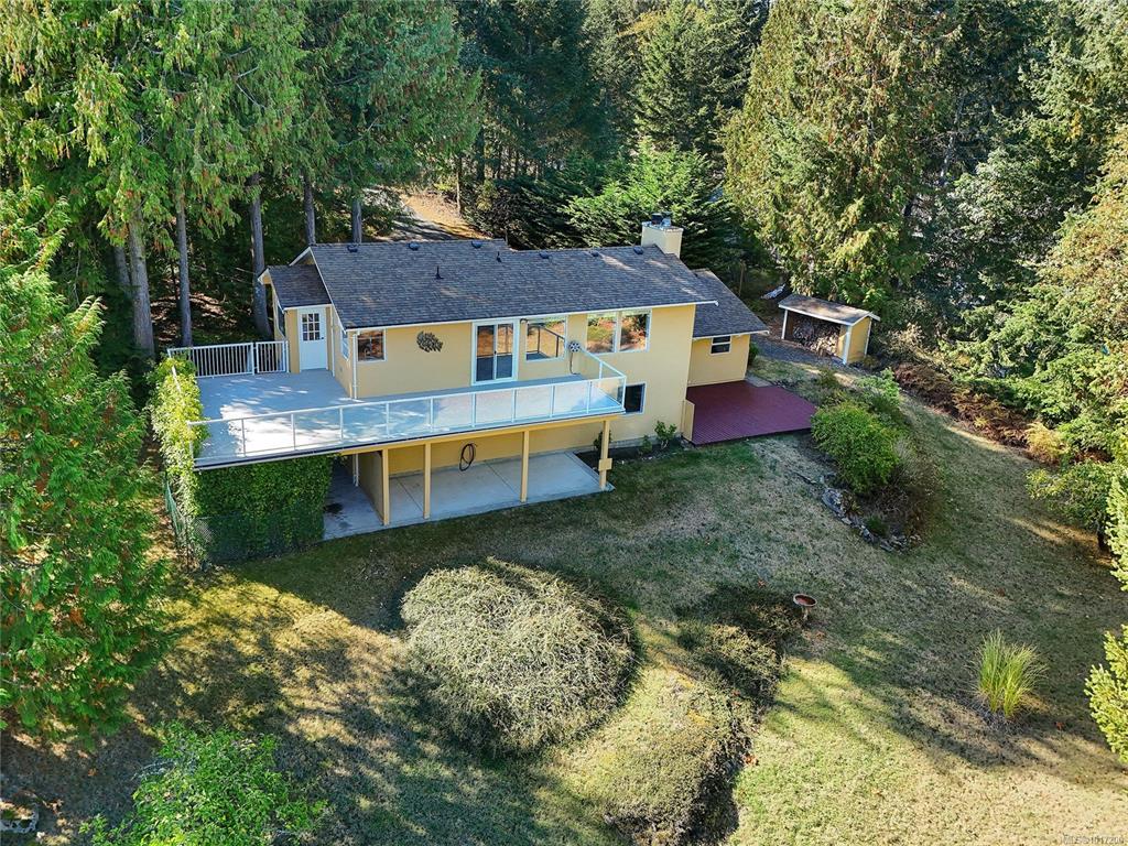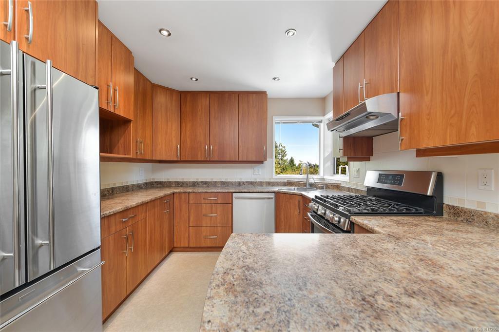 Tucked away on a quiet cul-de-sac in desirable Lands End, this private 1-acre property backs onto municipal parkland with direct access to scenic walking trails. This inviting family home features a bright, oversized living room with distant mountain views and ocean glimpses, opening to an expansive wraparound deck ideal for outdoor entertaining. The updated and light-filled kitchen boasts stainless steel appliances, under-cabinet lighting, ample storage and generous workspace, adjoining a formal dining area. Both bathrooms fully renovated feature heated tile floors, with the primary ensuite enhanced by a large skylight and walk-in shower. French doors from the primary bedroom lead to a tranquil south-facing patio. A spacious family room with wood stove adds warmth and character. Complete with a double garage and RV/boat parking, this inviting retreat offers relaxed coastal living just minutes from Sidney, BC Ferries and the airport.