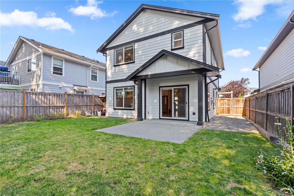 Quietness and Convenience! Step into a bright, 9 ft ceiling height, welcoming space with an open concept kitchen featuring quartz countertops, stainless steel appliances, and stylish cabinetry. The large living-dining area is perfect for relaxing, with a cozy natural gas fireplace and patio door to your private, flat, fully fenced, south-facing backyard. Upstairs, the generously sized primary bedroom is a true retreat with En-suite. Three additional well-sized bedrooms, a full 4-piece main bathroom, and a walk-in laundry room complete the upper level. On-demand hot water, HRV , and a natural gas FP for maximum energy efficiency and low monthly costs. This home is also ideally located just a short walk from Sooke Core, local parks, schools, pool, arena, and public transit. Enjoy easy access to hiking and biking trails, crabbing off the public dock, plus plenty of great dining and shopping options. This beautiful home offers the perfect blend of comfort, style, and convenience.