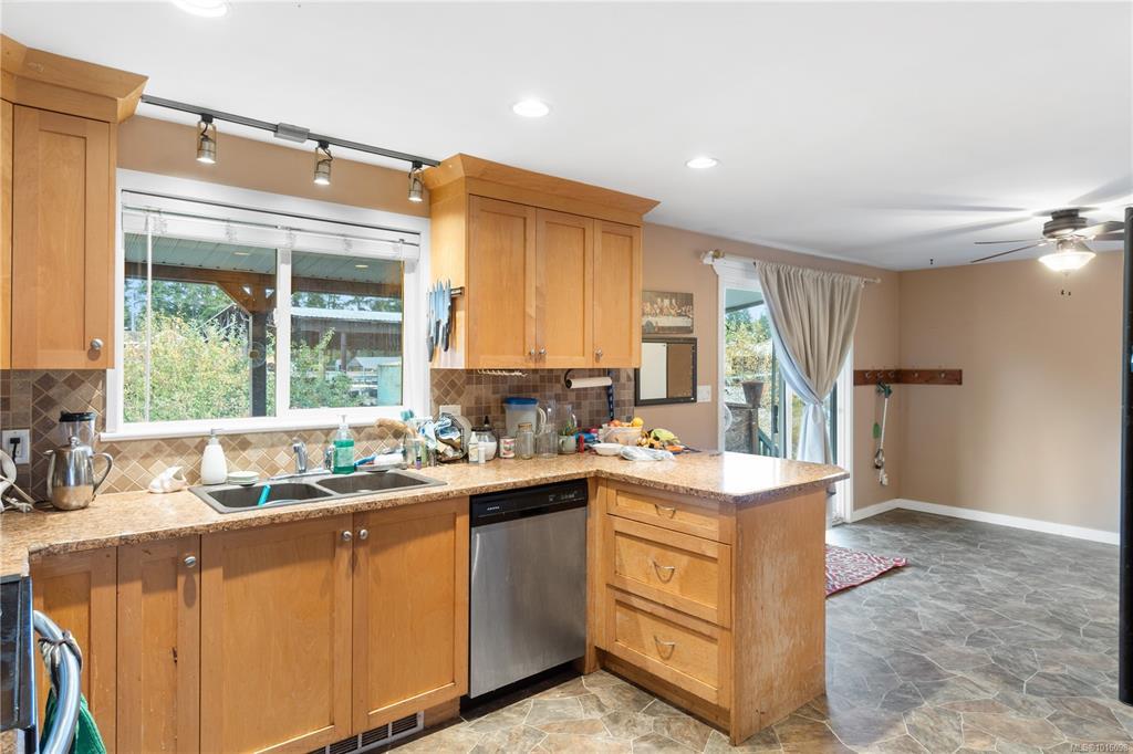 Unlock the potential of this .85-acre property in the heart of Errington! With Mount Arrowsmith views and ample space for RVs, boats, or future ideas, this versatile property is ideal for investors or those with vision. The upper level features a 3-bedroom, 2-bath double-wide mobile built on seacans and a cement foundation with vinyl siding, metal roof, and vinyl windows. Upstairs offers two full baths, including an ensuite with separate shower and large tub. Below, a self-contained unauthorized suite with its own driveway off Christian Street provides flexibility for income or extended family and unparalleled storage space. A drilled well, septic system, & wood-burning stove add comfort & practicality. While updates are needed, the opportunity is clear—two living spaces, income potential, and room for a fenced garden with fruit trees & vines. Peaceful rural setting near schools, daycare, trails, & the Errington Farmers Market, just minutes to Parksville’s beaches and shopping.