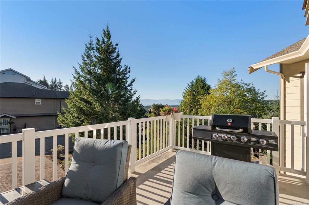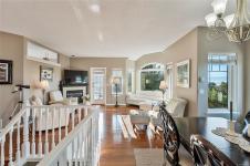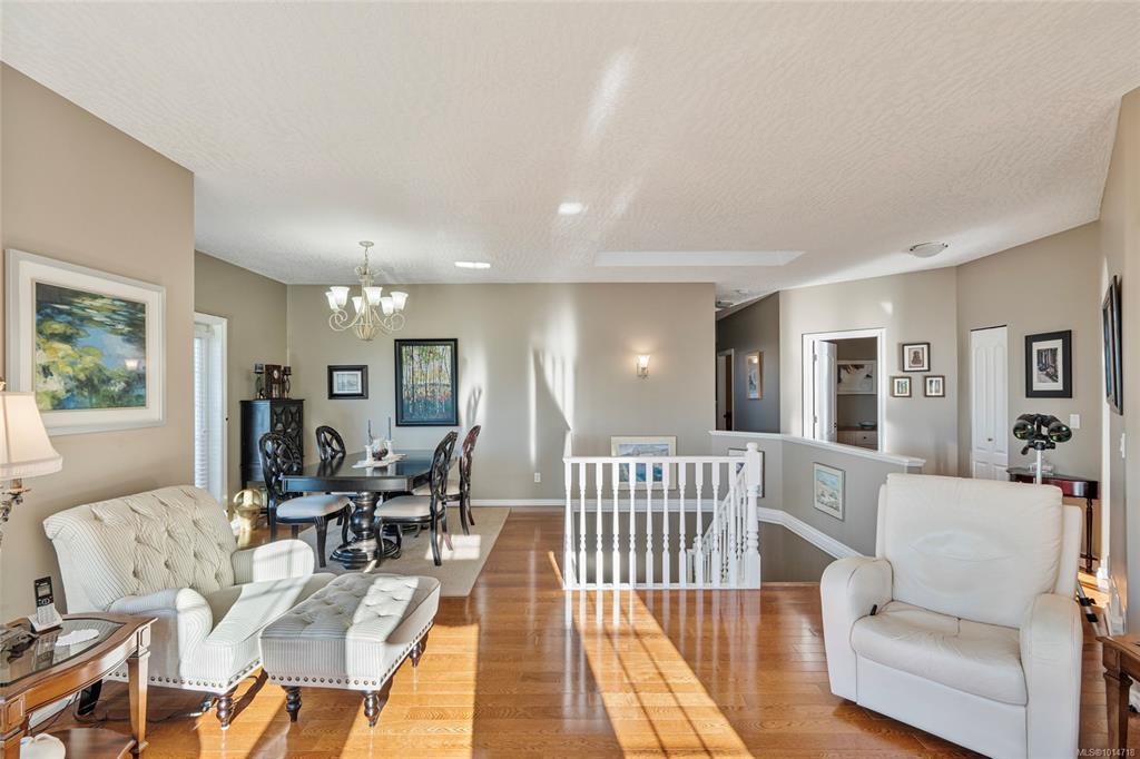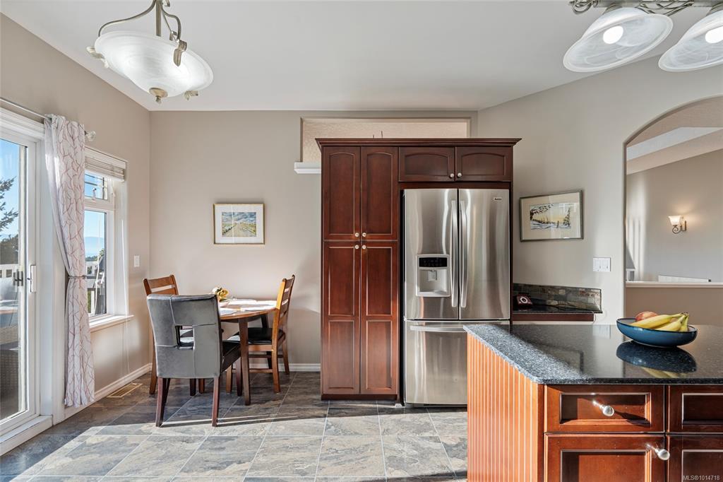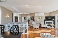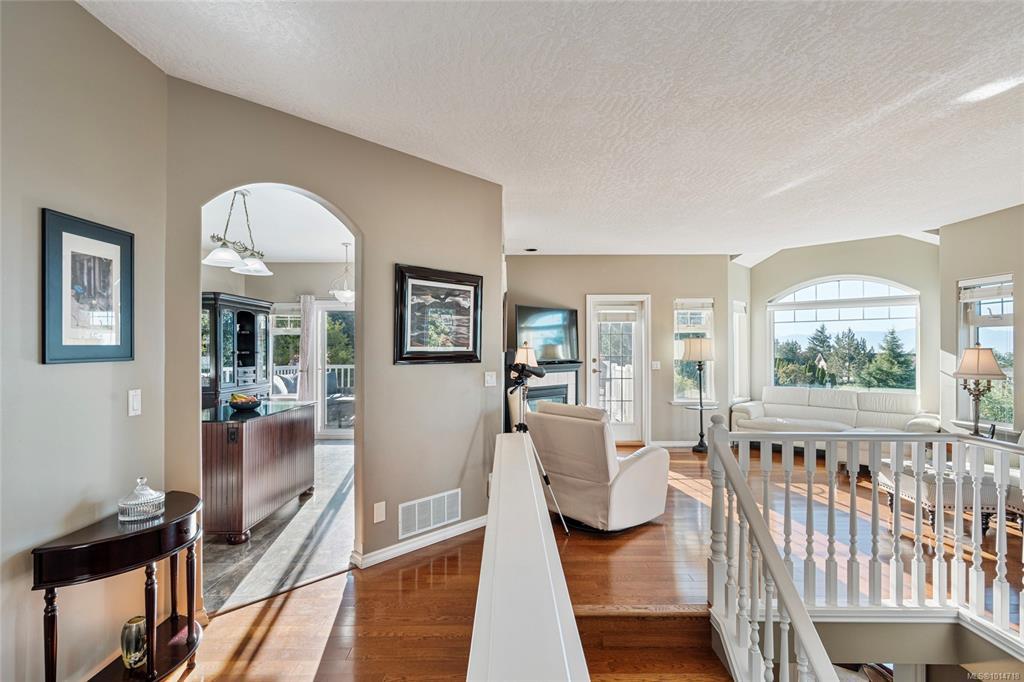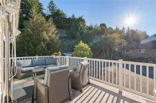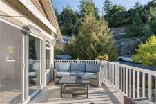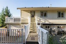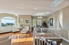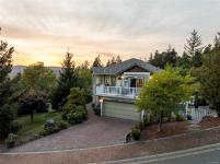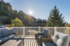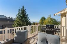 Tucked on a quiet street just steps from Lookout Lake, this beautifully maintained family home captures sweeping ocean and Olympic Mountain views from oversized living room windows. The functional layout is made for family living, with three bedrooms and two bathrooms upstairs, including a spacious primary with a walk-in closet and an ensuite. Downstairs, you’ll find a flexible floor plan with a bright family room, 2 bedrooms , office, full bath, and laundry—ideal for guests, teens, or remote work. The heart of the home is a generous kitchen with cherry shaker cabinetry, quartz counters, stainless steel appliances, and an inviting breakfast nook that opens onto one of two sunlit balconies. Outside, a serene retreat awaits with lush landscaping, a tranquil river, pergola seating, and a private screened-in hot tub. With a newer roof, heat pump, and hot water tank, plus wood floors and an abundance of natural light, this home offers relaxed West Coast living at its finest.