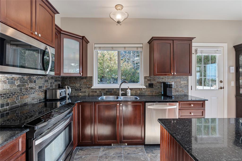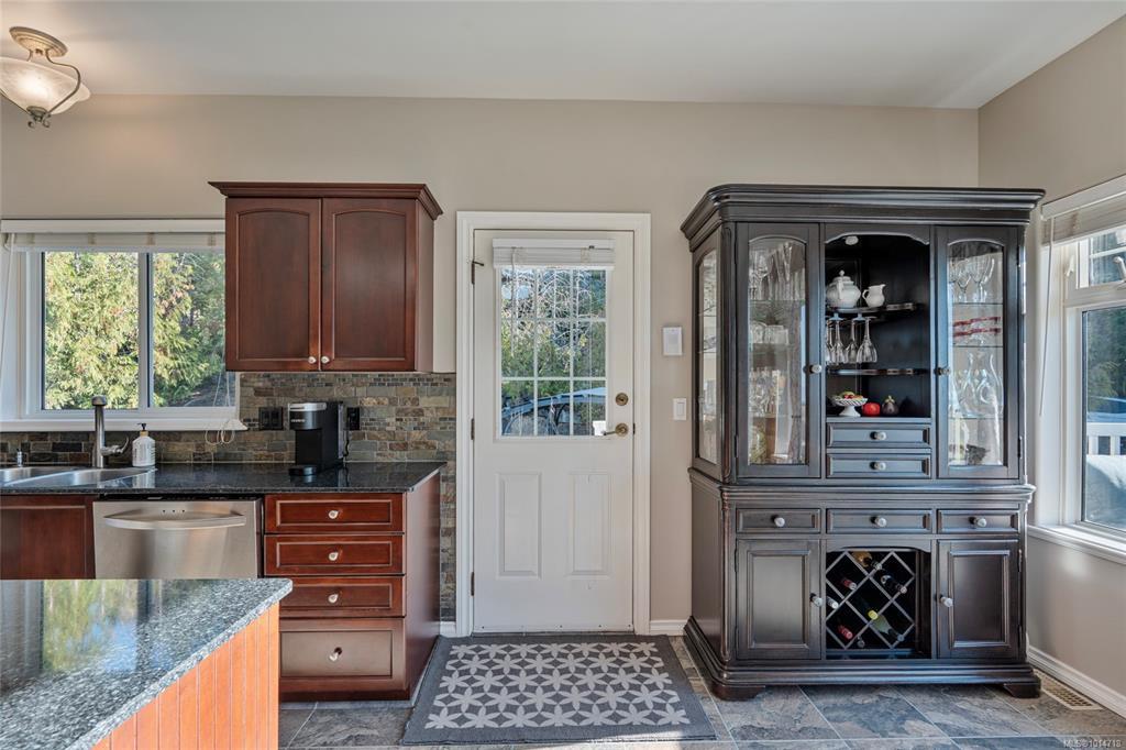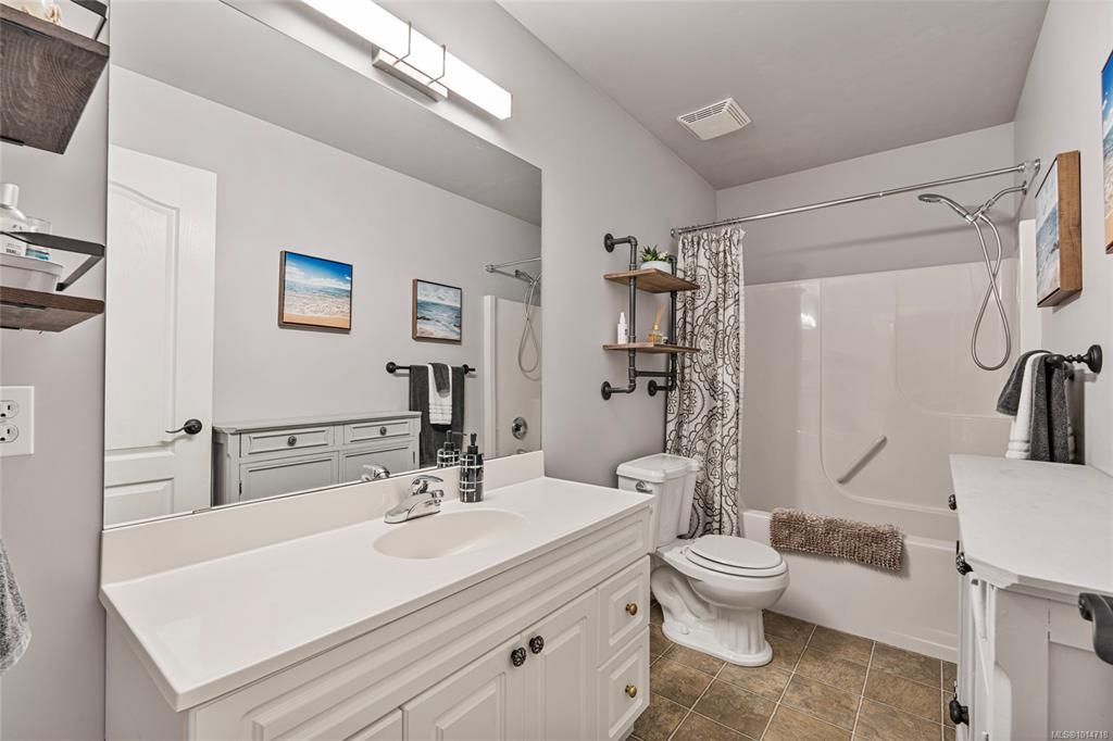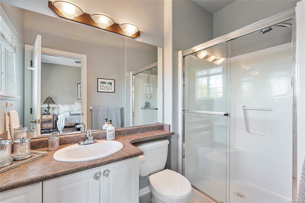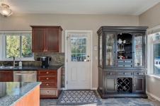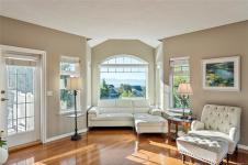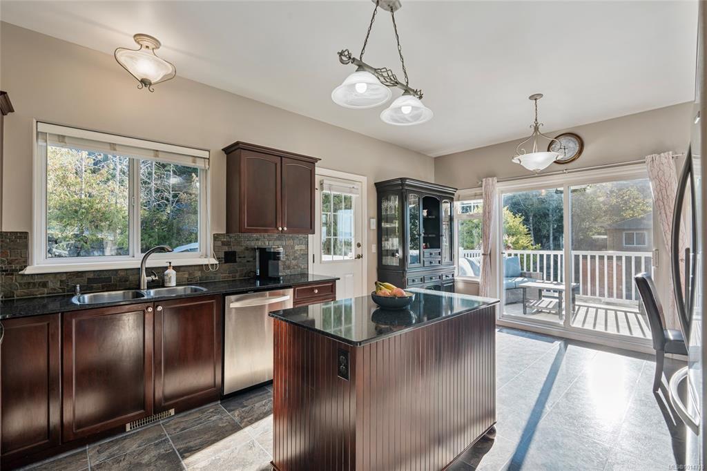 Tucked on a quiet street just steps from Lookout Lake, this beautifully maintained family home captures sweeping ocean and Olympic Mountain views from oversized living room windows. The functional layout is made for family living, with three bedrooms and two bathrooms upstairs, including a spacious primary with a walk-in closet and an ensuite. Downstairs, you’ll find a flexible floor plan with a bright family room, 2 bedrooms , office, full bath, and laundry—ideal for guests, teens, or remote work. The heart of the home is a generous kitchen with cherry shaker cabinetry, quartz counters, stainless steel appliances, and an inviting breakfast nook that opens onto one of two sunlit balconies. Outside, a serene retreat awaits with lush landscaping, a tranquil river, pergola seating, and a private screened-in hot tub. With a newer roof, heat pump, and hot water tank, plus wood floors and an abundance of natural light, this home offers relaxed West Coast living at its finest.