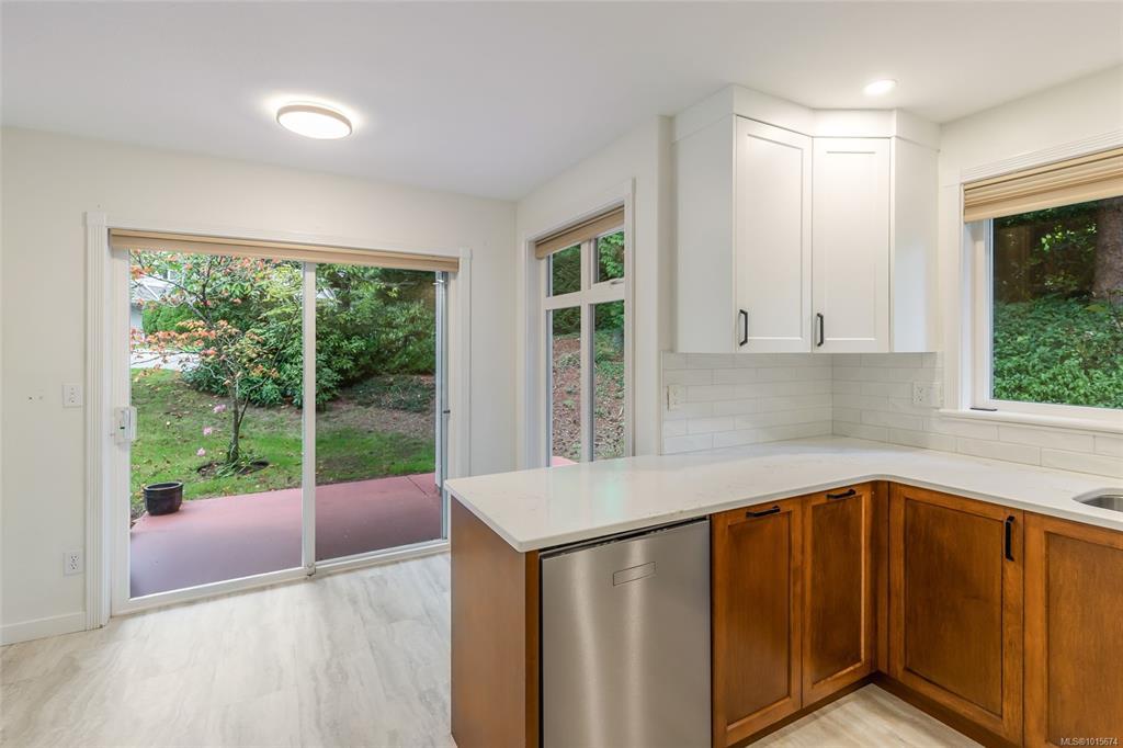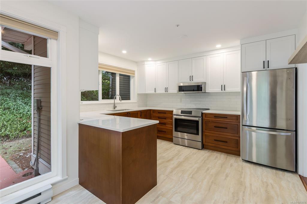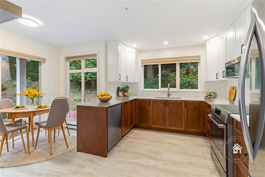 Welcome The Highlands, North Nanaimo living at it's best. This end-unit has a well thought out 1,550 sq.ft layout featuring 2 primary bedrooms and 3 bathrooms. The open living room and dining room feature a natural gas fireplace and vaulted ceilings. The master bedroom can be on the main level, or upstairs as both have an ensuite, which is also ideal for guests. The den on the main level also works great as an office space or hobby room. This home has an updated kitchen and includes custom kitchen cabinets, a bosch induction stove. Updated hardwood flooring on the main level as well, new carpet in the bedrooms and stairs,updated window coverings, heat pump, and new hot water tank. Other features include a 6' high crawlspace for excellent storage space & has easy access located close to shopping, recreation, bus route and walking trails. 55+ One dog and one cat or two dogs and two cats(no size restrictions). All measurements and data are approximate and must be verified if important.
