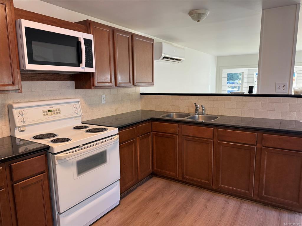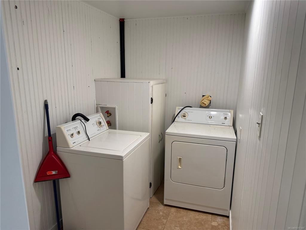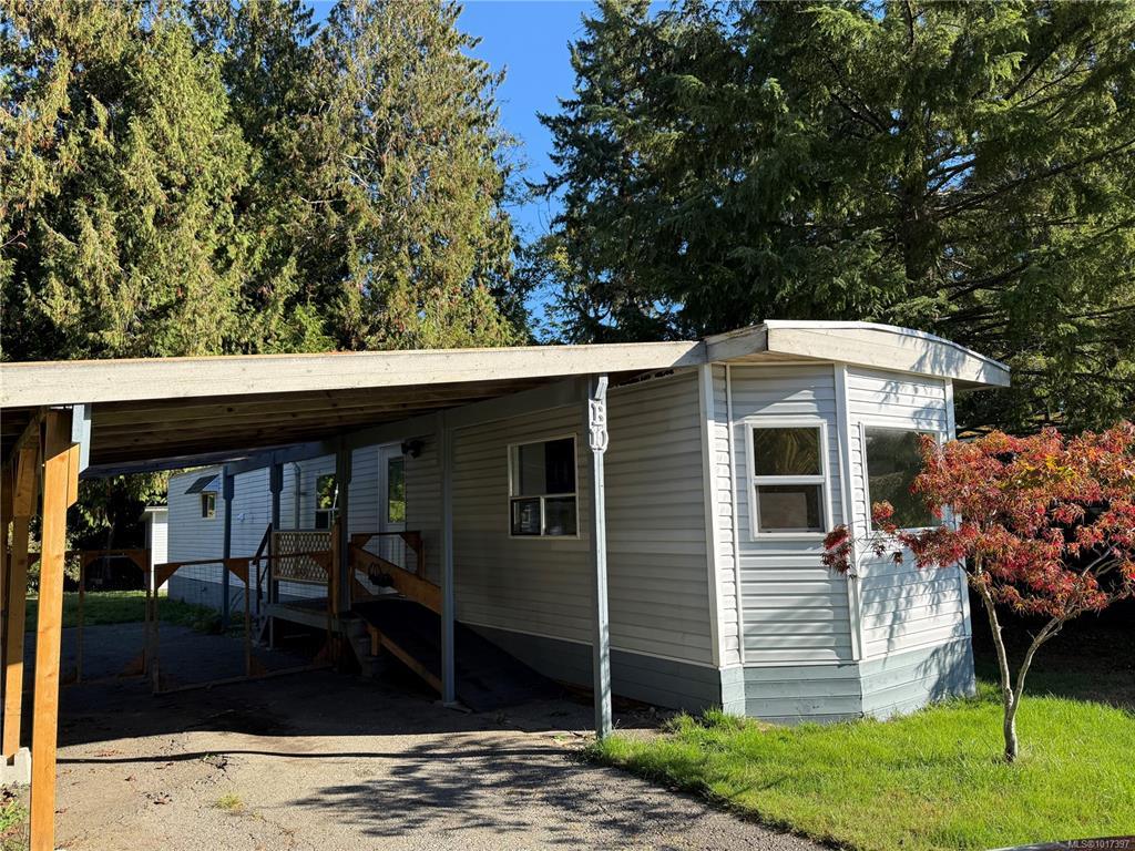 Experience comfort and modern living in this beautifully renovated 2-bedroom + den, 1-bathroom home nestled in the peaceful Cedar Creek Mobile Park, Mill Bay. Surrounded by trees, this spacious 980 sqft single-level residence offers both privacy and a welcoming sense of space. Every detail has been thoughtfully updated — from the complete removal of poly-B plumbing to the addition of a new heat pump (2023), a cozy pellet stove (2015), stylish wood-toned cabinetry, new laminate flooring, and elegant travertine tile in the laundry room. The bright 4-piece bathroom adds everyday convenience, while a generous secondary building on the property offers endless options for a workshop, craft area, or extra storage. The skirting has been recently replaced and freshly painted on the back side, reflecting the care of long-term owners. Move-in ready and beautifully maintained, this home is an excellent opportunity to enjoy easy living in a serene setting.