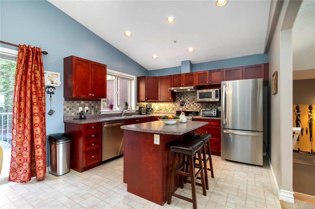Welcome to Admirals Landing at Thetis Cove. A lovingly maintained and sunny south-facing 3-Bedroom, 3-Bathroom townhome offering 1,800+ sq.ft. of comfortable living space with ocean and mountain views. The well-managed strata has completed major exterior updates including new roofs, decks, gutters, and exterior paint. The main floor features bright open-concept living and dining areas, a spacious kitchen with island and eating nook, plus a cozy family/den space. Upstairs, enjoy a private primary suite with ensuite and large deck overlooking the mountains and ocean. The lower level includes two additional bedrooms, full bath, and laundry. Set among the trees with three deck areas to relax and enjoy the views, plus a double-car garage. Ideally located—walk to Admirals Walk shops and cafés, golf nearby at Gorge Vale, explore local trails to the ocean and Thetis Cove, and just minutes to downtown Victoria!