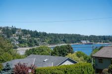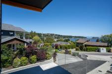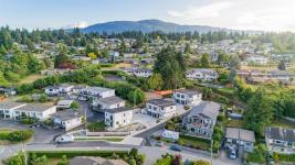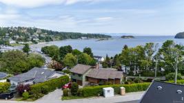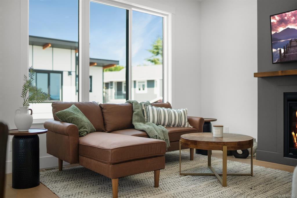 Welcome to Doctors Rd in beautiful Departure Bay—home to this stunning new 5-unit luxury townhome complex with sweeping ocean and mountain views. This is 1 of 4 two storey duplex units. Upstairs, the main living space is bright and open with views of Dep Bay, featuring engineered hardwood floors, a modern kitchen with stainless steel appliances, stone countertops, custom wood cabinetry, a cozy dining nook, a welcoming living room with an electric fireplace, a 2-piece powder room and access to a private patio w gas BBQ hook up. The spacious 11'x16' primary bedroom has a walk-in closet with custom high end shelving, and a sleek 4-piece ensuite boasting heated tile floors, a custom tiled shower and high end fixtures. The entry floor offers two additional beds, a stylish 4-piece bath, a laundry/storage room, and an attached 11'x25' garage w roughed in EV charger. Each unit additionally has: high efficiency gas furnace, A/C, high end closet organizers, hardi plank exterior, full landscaping