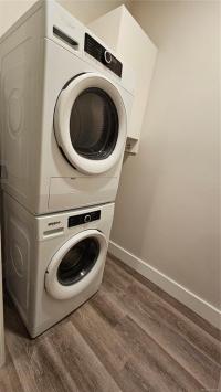 Immediate Possession is possible! Resort-style, luxurious 55+ living with ocean & city views. This near-new unit offers exceptional value. Enjoy a spacious 2-bed plus large den, 2-bath suite with a private balcony. The kitchen has a panelled Blomberg fridge/freezer/dishwasher, Fulgor wall oven, induction cooktop, quartz countertops, custom cabinetry. In-suite laundry, & heated bathroom floors. Conveniences include secured FOB access to the building & unit with pet-friendly policy. Club fee covers concierge services, daily continental breakfast & high tea, basic TV cable/internet, 24-hour emergency response, transportation & community activities. The spectacular 16,000 sqft amenities floor includes rooftop deck with a fireplace & community BBQs, stunning views from floor-to-ceiling windows, full-service restaurant, tea room, lounges, fitness centre, art studio, & library. Amenities include an on-site hair salon, movie theatre and Royal Legion next door. One underground parking for rent.