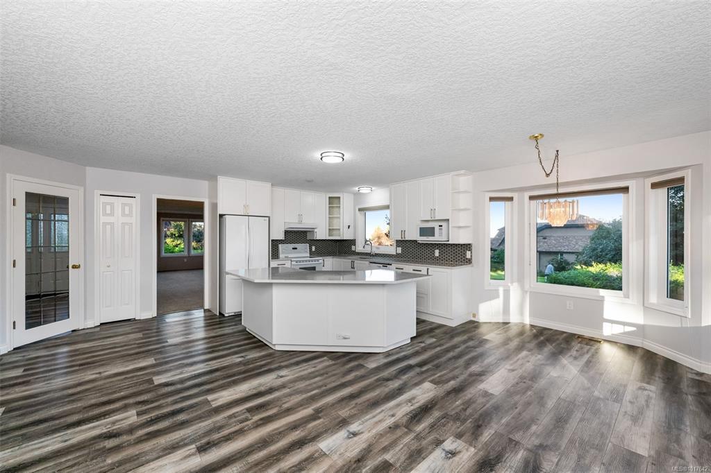 This exceptional Tanner Ridge rancher is a rare find set up on a prime corner lot in a sought-after neighborhood. Offering over 1700 sqft, it features 3 spacious bedrooms, 2 bathrooms, a fantastic kitchen, and a cozy family room that opens to a sunny south-facing deck and patio. The combination living/dining room is ideal for hosting memorable gatherings. Several rooms offer stunning views. The bright, airy interior boasts a functional layout and includes a new heat pump for year-round comfort. Additional highlights include a crawl space, a double garage, and parking for a boat or trailer. Conveniently located near dog parks, Island View Beach, walking trails, Elk Lake, Victoria, the airport, and the ferry, this home is truly a gem.