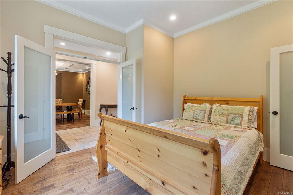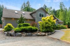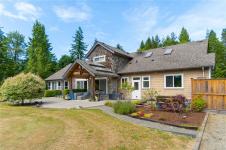 This beautifully built 3,038 sq ft, 3 bed, 4 bath home sitting on a level 2 acres (aprox.) will captivate you with it's exquisite details; timber framed entry, engineered hardwood flooring, elegant coffered ceiling in the dining room, quartz counters & stainless steel appliances. The living room boasts 11-foot ceilings, stylish wainscoting, wood stove insert, & expansive southern exposure windows providing lots of natural light. The primary bedroom includes a luxurious ensuite & spacious walk-in closet. This home also provides a large den & a bonus room; perfect for extra bedrooms, home office, hobbies or play room for the kids! Enjoy outdoor living on the covered patio & unwind in the hot tub. Looking for adventure? Refresh the trail to the river to go fishing or a swim! Cross the river to access your own private 15 acres: explore & hike for hours. Located just minutes from down town Qualicum Beach!