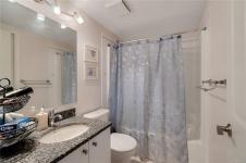 Step into this beautifully maintained 2-bedroom corner unit, filled with natural light and offering a smart, open-concept layout. The kitchen boasts granite countertops and seamlessly connects to the dining area and living room, where a cozy gas fireplace and sliding doors lead to a large, private balcony—perfect for relaxing or entertaining. Both the kitchen and bathrooms feature elegant granite surfaces, adding a touch of luxury throughout. The spacious primary bedroom includes a walk-through closet and a well-appointed ensuite with a walk-in shower and built-in bench. The second bedroom is generously sized—ideal as a guest room, home office, or den—with easy access to the main bath. Additional highlights include in-suite laundry, ample storage space, a separate storage locker, and covered parking. Situated in the highly sought-after Centennial Place, just steps from parks, shops, and all the amenities of downtown.