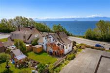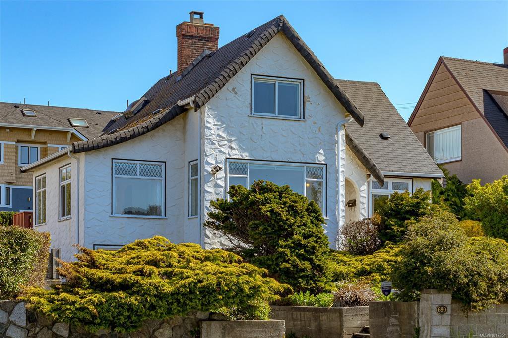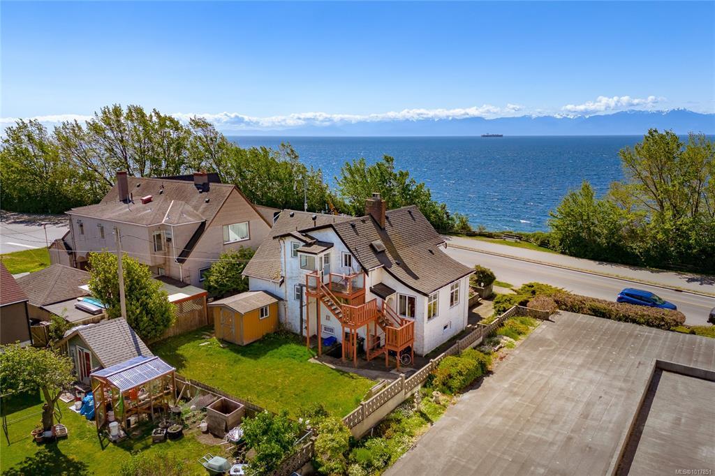 Imagine living right across the OCEANFRONT on Dallas Road, steps to Mile Zero and Beacon Hill Park. The breakwater and beach access is literally across the street. This 1938 character home with four bedrooms and three bathrooms offers panoramic OCEAN VIEWS all the way across to the Olympic Mountains. The original OAK HARDWOOD floors with walnut inlay adorn the living room and formal dining room. The wood fireplace centers the living room in this art deco home. The full basement with walk out access and GARAGE is ready for your personal touches. A separate one bedroom suite is self contained on the upper level and has its own private entrance on the back. Natural gas is connected for the hot water tank and the furnace is low maintenance electric. Perfect for the investor and/or homeowner, the location & Duplex Zoning of this property is arguably some of the best offered in Victoria. Please see both the YouTube video & 3D Matterport Tours.
