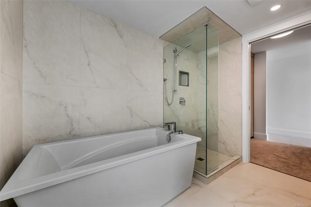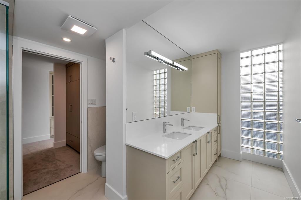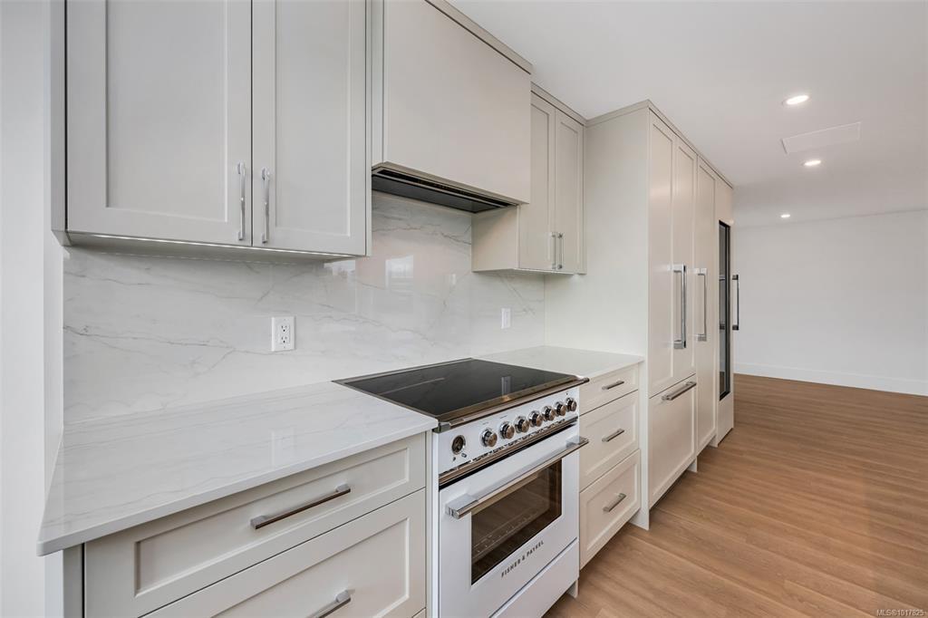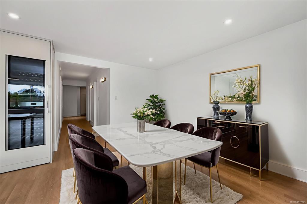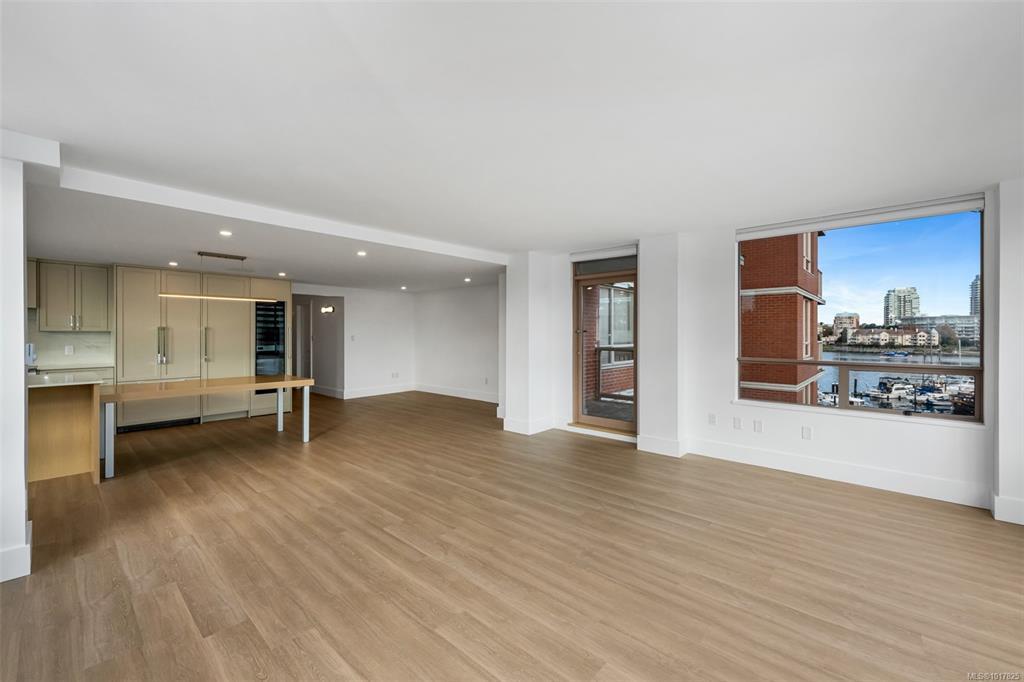 Welcome to this meticulously renovated James Bay home, blending luxury, functionality, and an unbeatable location. The bright, airy open-concept layout is ideal for entertaining and everyday living. The chef’s kitchen features high-end Fisher & Paykel appliances, a built-in wine fridge, and sleek Dekton countertops. Custom built-in cabinetry extends throughout, maximizing storage with a clean, modern aesthetic. Enjoy remote-controlled blinds, luxury vinyl plank flooring, and plush new carpeting with 8 lb underlay. Expansive windows showcase beautiful views filling the home with natural light. Steps to Fisherman’s Wharf, the scenic Dallas Road waterfront, and minutes from the vibrant downtown core, this exceptional home is move-in ready for those seeking refined design and a prime James Bay lifestyle.