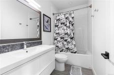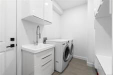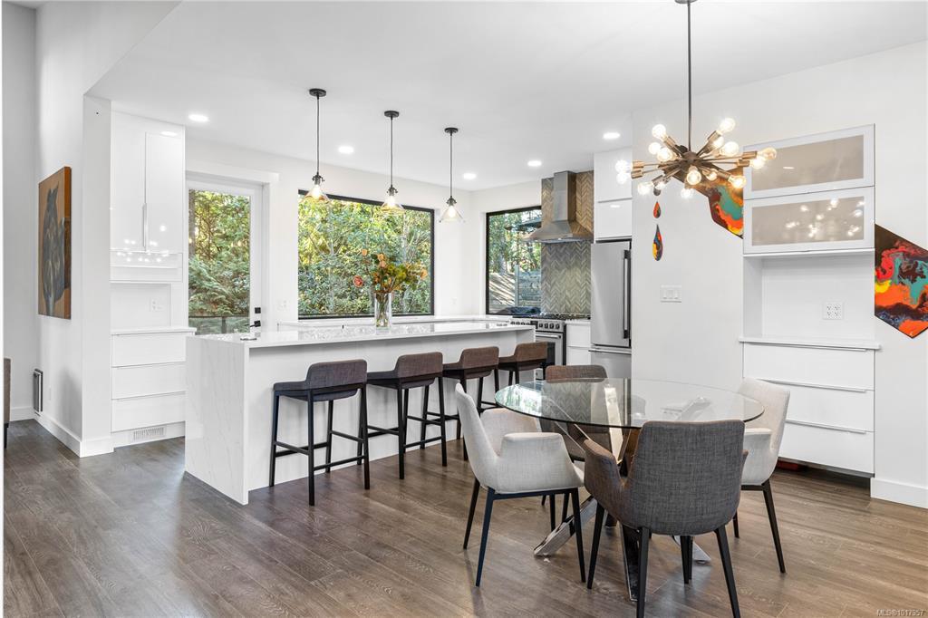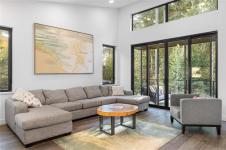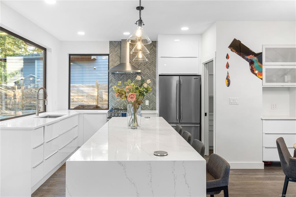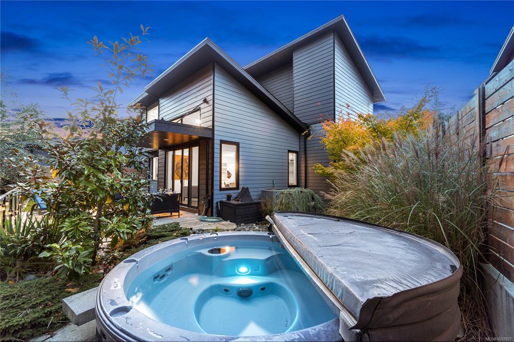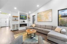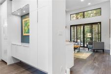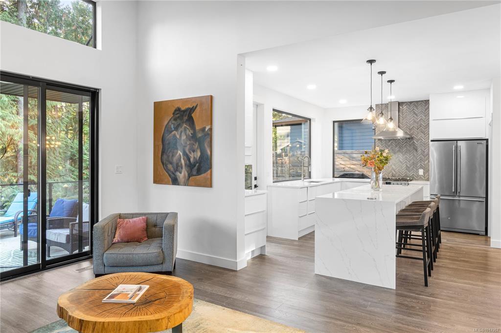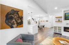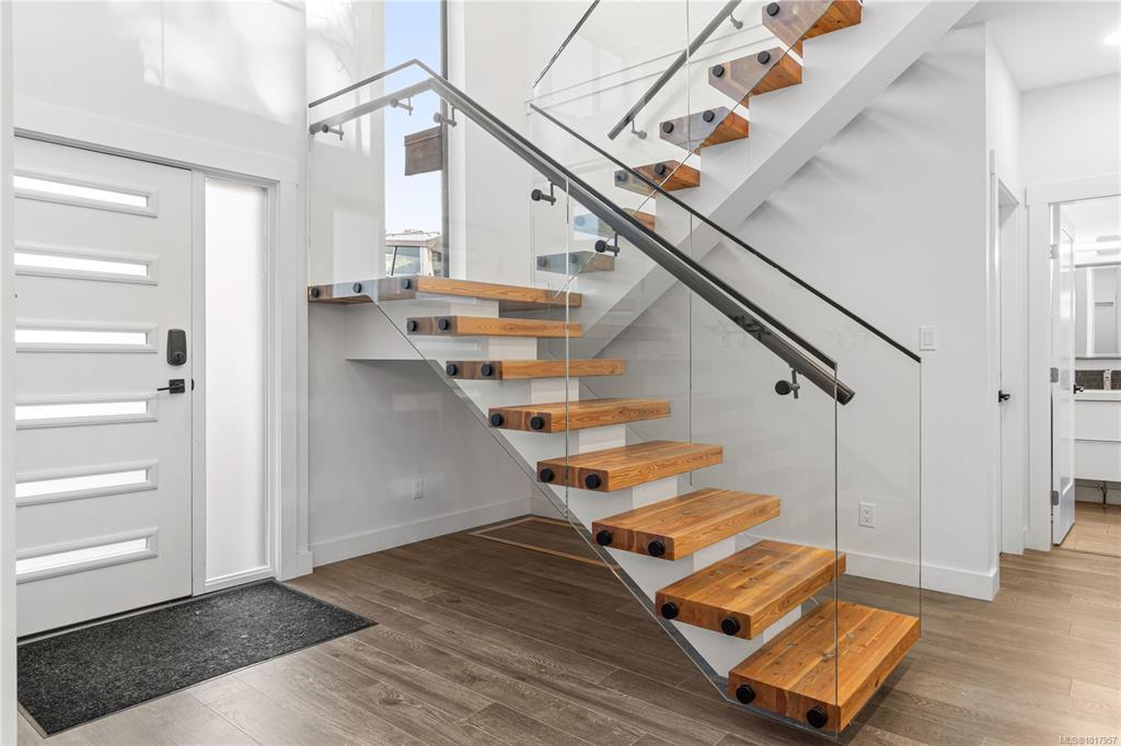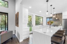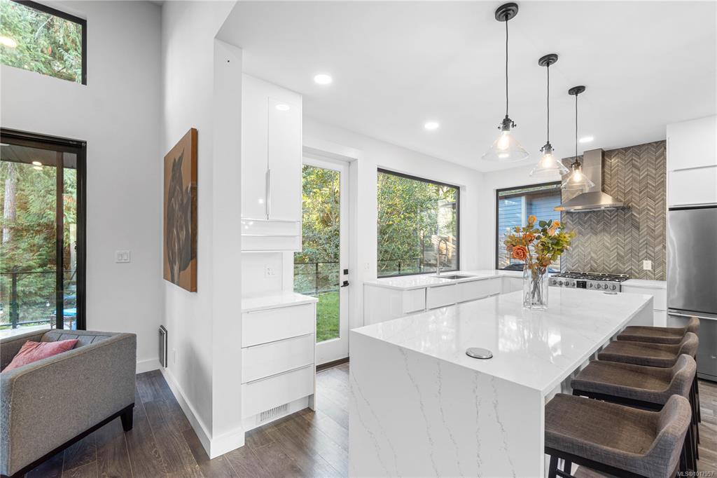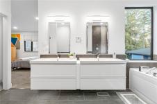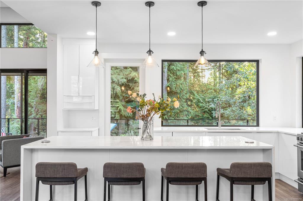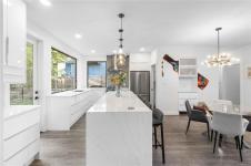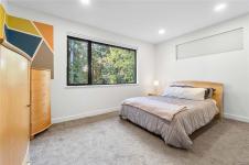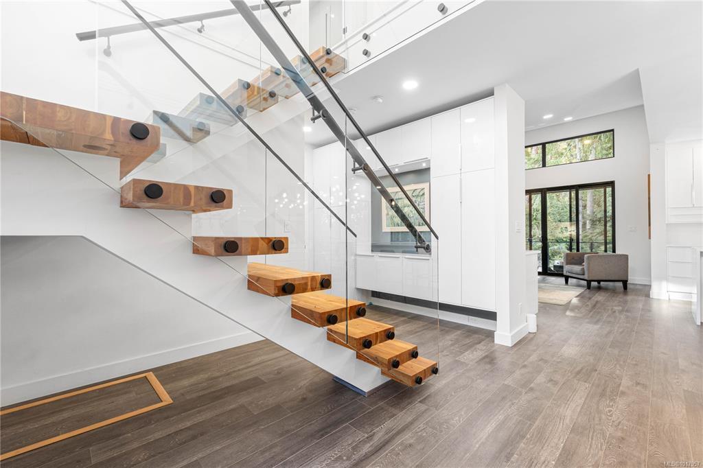 Featured in a leading modern home magazine, this architectural masterpiece blends style, function, and comfort. A floating glass staircase, vaulted ceilings, and open, light-filled layout create a striking first impression. The designer kitchen showcases a counter-to-ceiling picture framed window and butler’s pantry, while the living area opens to a large patio with glass railings and a hot tub surrounded by forest views. Upstairs offers a luxurious master suite with spa ensuite and walk-in closet, two additional bedrooms and a full bath. The lower level includes an office and versatile rec room/bedroom with powder room, perfect for bonus family space. Above the garage, a private one-bedroom suite adds flexibility for guests or income. Set on a large partially treed lot, new stairs now provide direct access from the backyard into over 400 acres of parkland - the ultimate connection between modern living and nature.