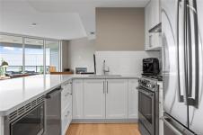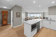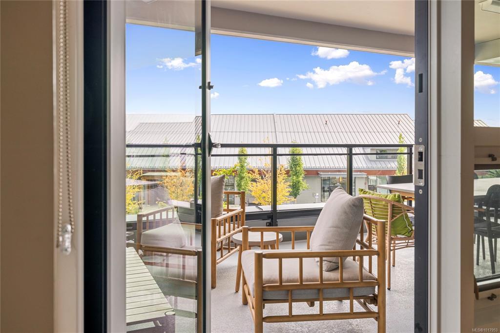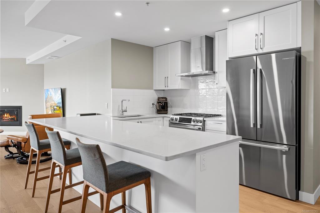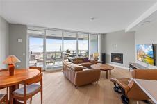 Embrace West Coast living in this beautifully appointed 2-bedroom + den condo at The Westerly, located in the prestigious Fairwinds community. This spacious and light-filled suite features 9' ceilings, a gas fireplace for cozy evenings, and a large private balcony offering panoramic views of the marina and coastal landscape. The open-concept design is both functional and stylish, with two generously sized bedrooms—each with its own ensuite—plus a versatile den perfect for a home office or guest space. The primary suite includes a walk-in closet and a luxurious ensuite bath with premium finishes. A generous pantry, full laundry room, and thoughtful storage throughout ensure day-to-day convenience, while secure underground parking stall, a storage locker, and bike storage add even more value. Ideally located only 15 minutes from both Parksville and North Nanaimo, this home offers the perfect balance of tranquility, convenience, and coastal charm.