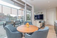 Welcome to the Redfern on Oak Bay Ave, a Jawl Residential development. This marquis residence offers such features as a full 2nd floor wrap around patio, SW orientation, pet friendly & 2 underground secured parking spots. From the moment you enter this bright and spacious 2 bedroom home, you'll immediately fall in love with its elegant finishings. The large kitchen offers a full quartz island, Wolf cooktop, Fisher & Paykel appliances including double wall oven and imported Italian millwork cabinets. The primary ensuite is to die for with built-in cabinetry, generous walk-in shower, soaker tub and W.C. The second bedroom enjoys a separate ensuite as well and there's a lovely powder room for guests. It doesn't feel like condo living when you have a full butler's pantry, laundry room and almost 400 sf of S/W patio space. A large 9 x12 storage room is exclusive for this home, 2 parking spaces, a common dog washing station and rooftop patio. The Redfern has it all Don't delay!