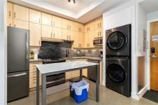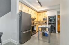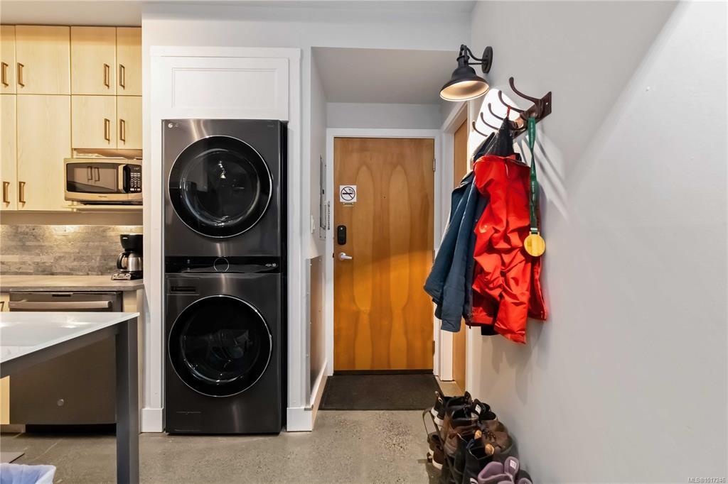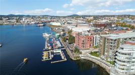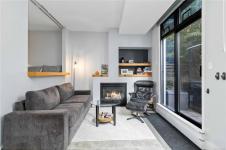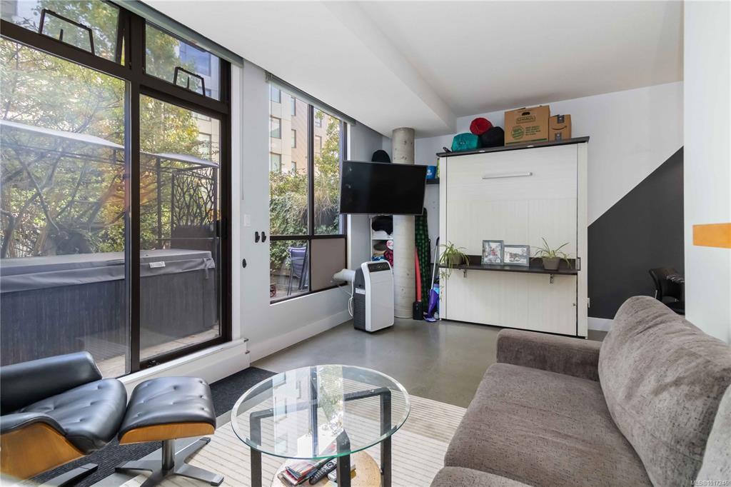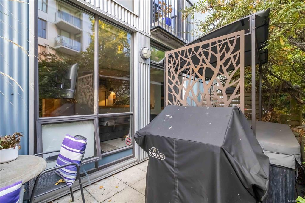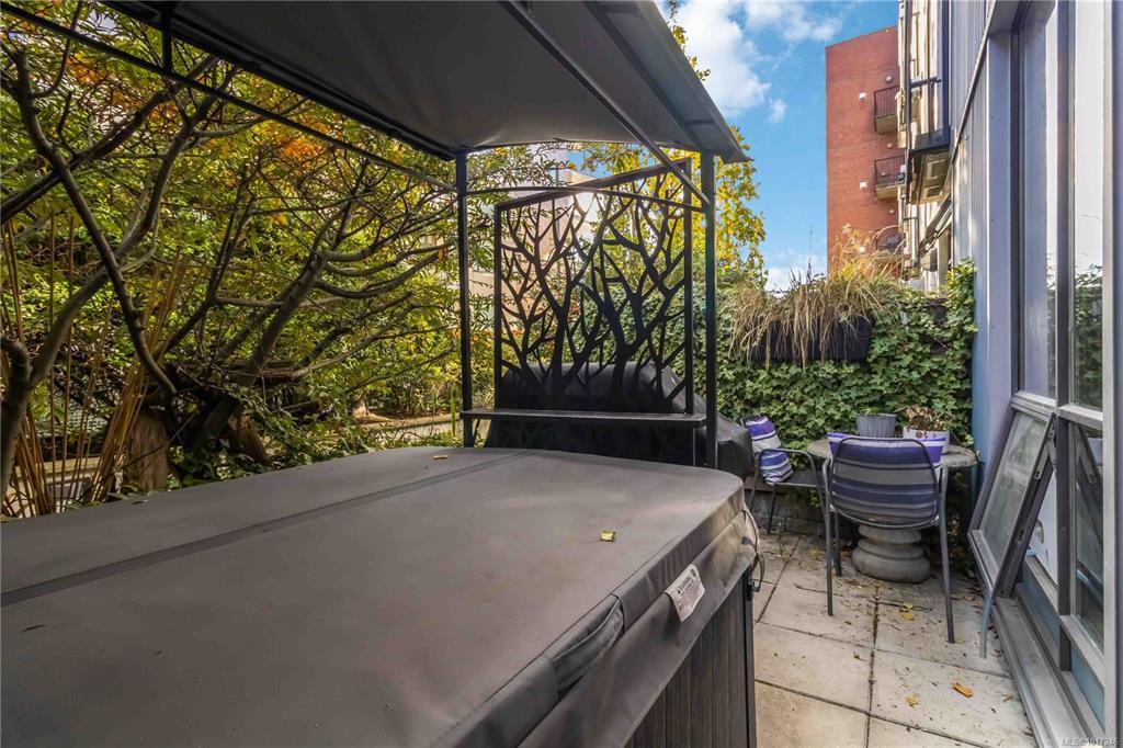 A rare downtown gem, this ground-floor Mermaid Wharf condo redefines urban waterfront living! The only unit with a private hot tub, this stylish retreat offers an open-concept design with polished concrete floors, quartz counters, slate appliances, and a gas fireplace. Thoughtful upgrades include motorized blackout blinds, a Murphy bed frame, and a new LG wash tower. Step outside to your private patio with direct access to the waterfront walkway or head up to the rooftop deck with BBQs and panoramic harbour views. Secure underground parking and storage add ease, while vibrant shops, cafes, and restaurants are just steps away. This one won’t last!