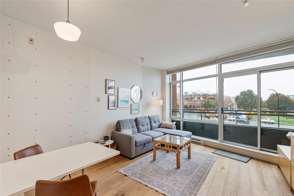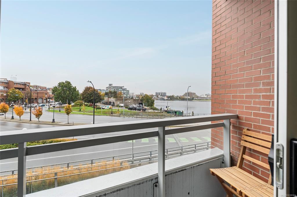 Ocean views! Located in Victoria's popular Old Town, The Janion is an architectural and historical standout. This steel and concrete development offers amazing amenities like a rooftop terrace with BBQ's and stunning harbour views, kayak storage with direct water access, a well equipped gym, and amenity room with kitchen. Step inside unit 211, and be delighted by natural light from south facing floor to ceiling windows, which offer picturesque ocean views. It is also equipped with a full kitchen including drawer dishwasher, murphy bed with dining table, 9' ceilings, in-suite laundry, blackout blinds, brand new engineered wood floors, and private balcony overlooking the water. This loft also comes with a storage locker! Perfect for simplified full time living, or investment (rental friendly and in high demand). Just steps to Victoria's best dining, coffee and retail, the urban lifestyle is waiting for you! Ran by a very professional strata.