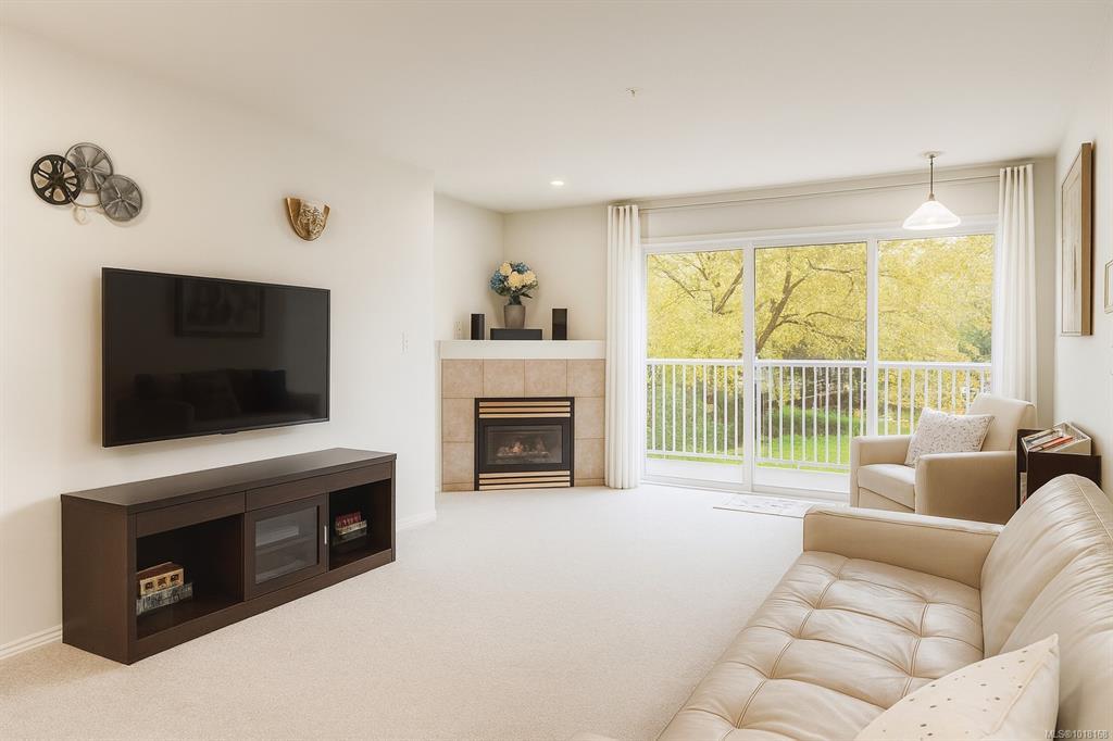 BRENTWOOD LANE CONDO! Seldom do suites become available on the back, quiet, garden side of this quality building in the HEART of Brentwood Bay Village. Very well-maintained family friendly complex, this move-in ready home offers a great layout w/3 Beds, 2 Baths with one of the larger floor plans offering 1,297 Sq Ft. Meticulously maintained and is Move-in ready, the spacious plan takes advantage of incredible natural light with big bright windows and a lovely, large balcony to enjoy the garden views in the summer and cozy up to the gas Fireplace in the winter! All new LED lighting. Primary Bedroom is over-sized w/walk-in closet & separate en-suite. Recent building work includes new windows, slider and vinyl decking. Heat Pumps allowed!! Secure underground parking, lots of street parking and a storage locker are included in this great opportunity. Within walking distance to Village shops, restaurants, library/community center, hiking/biking trails, boating, paddling and transit too!