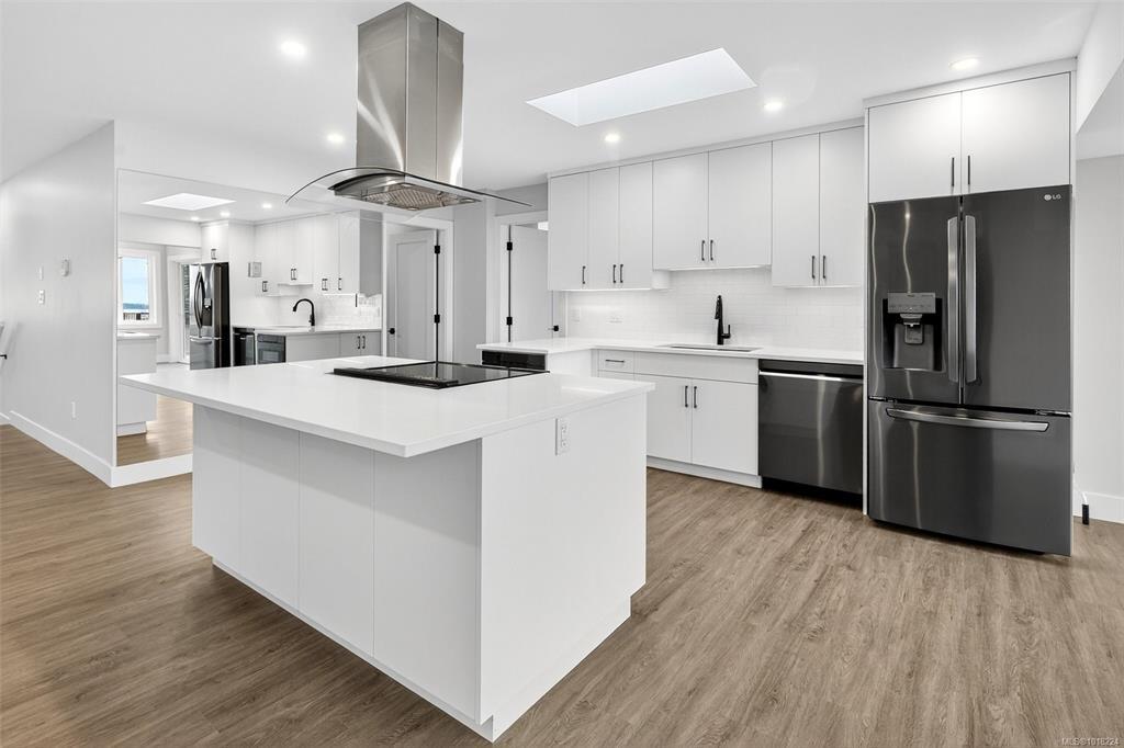 With sweeping ocean views, this beautifully updated home sits on a sunny 0.45-acre lot in desirable Mill Bay and offers over 3,600 sq. ft. of thoughtfully designed living space with outlooks from nearly every room. Perfect for multi-generational living. The main floor features open-concept living and dining areas oriented to showcase the Salish Sea and Mt. Baker, plus 4 bedrooms (2 with ensuites), a separate laundry room, and a spacious mudroom with its own entrance. Downstairs, a newly finished, fully self-contained 2-bed + den in-law suite enjoys large windows, its own ocean views, and a covered patio—ideal for guests or extended family. The professionally landscaped, low-maintenance yard includes full irrigation and is fully fenced. Dual remote-controlled gates provide separate driveways and private access to both the main home and the in-law suite.