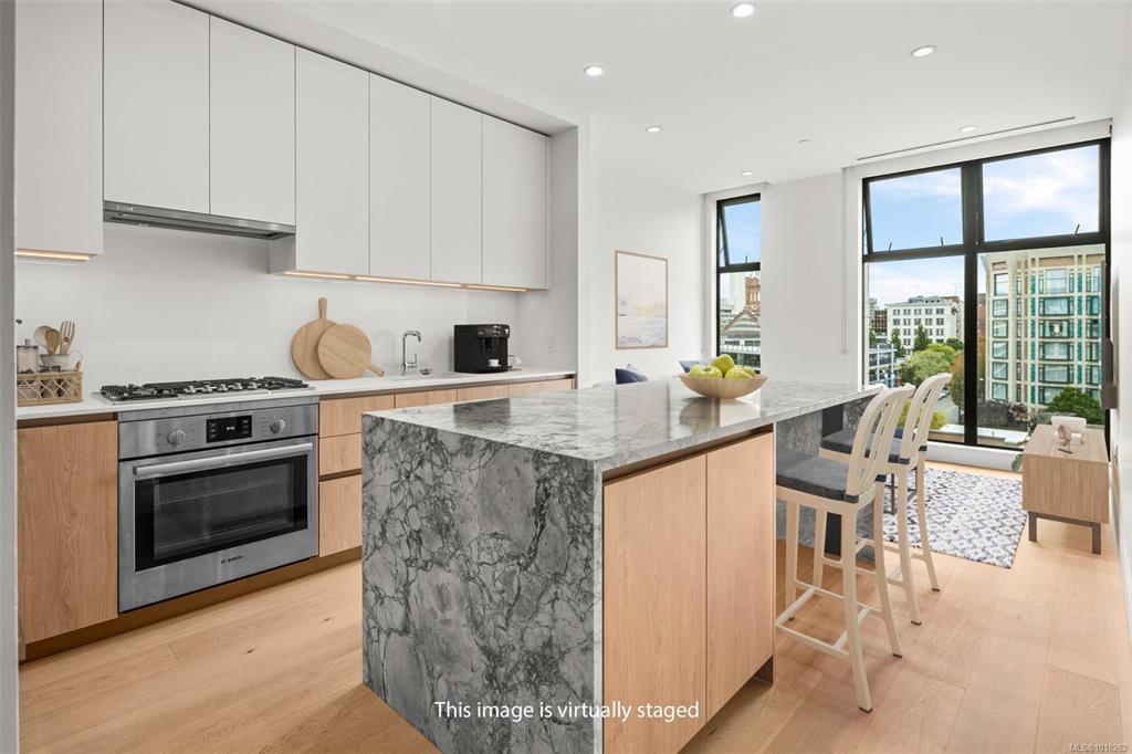 Customs House is downtown Victoria's premier condominium building, steps to the inner-harbour and the Empress Hotel. This move-in ready immaculate condo is in an unbeatable location and an unbeatable building for anyone looking to enjoy upscale downtown life and then retreat into their quiet luxury condo. Perfect for an out of town minimalist business person looking for a luxury pied-Ã -terre instead of impersonal hotel stays. Finished with wide plank wood flooring, central air-conditioning, heated tile bathroom flooring and a dream kitchen (Kohler fixtures, quartzite stone countertops, integrated appliances including a Bosch fridge and gas range, Liebherr wine fridge, and built-in Bosch espresso machine). Building amenities include state of the art gym, sauna & steam room, car wash station, and concierge 7 days a week. Pets allowed, long term rentals allowed.
