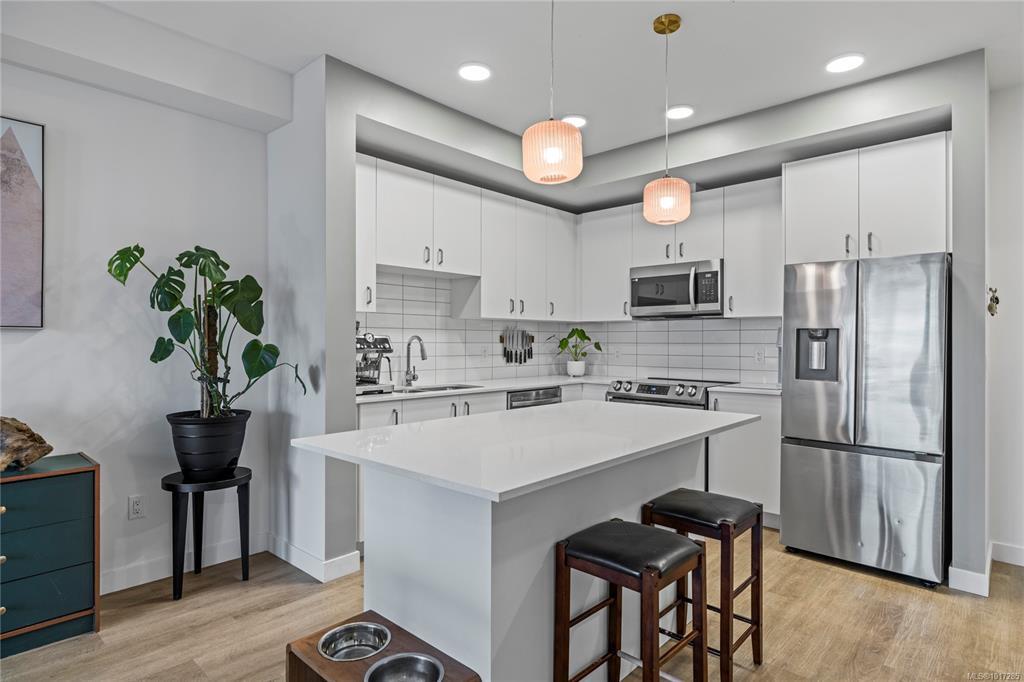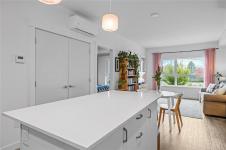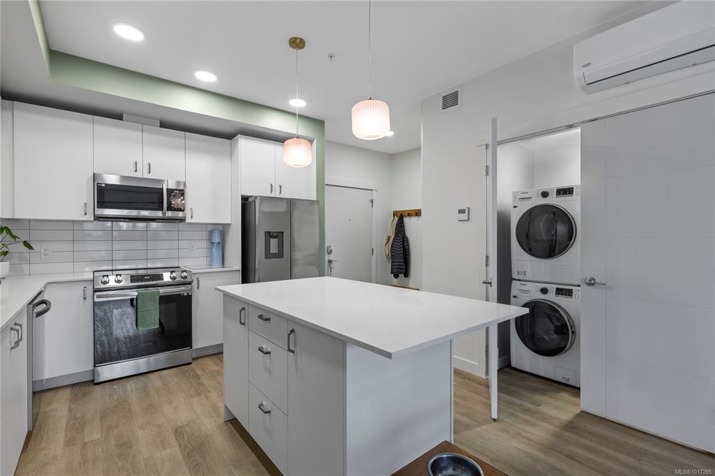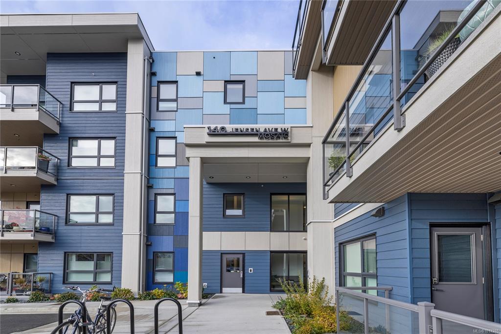 Welcome to Mosaic, Parksville’s green built centrally located condo building! This 1 bed, 1 bath, plus storage unit, boasts 9’ ceilings, quartz countertops, triple-pane windows, and energy-efficient upgrades including a heat pump, and hot water on demand. The building is designed for sustainability with solar panels, leak detection, and superior soundproofing.