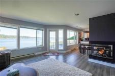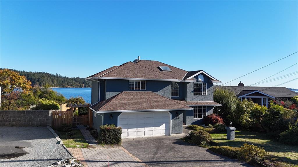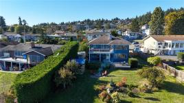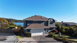 Welcome to your oceanfront retreat overlooking the serene Esquimalt Lagoon! This beautifully designed 2,800+ sq ft home is tucked away on a quiet cul-de-sac and captures breathtaking sunrise and sunset views from both levels. Enjoy the coastal scenery from the 21x8 upper balcony or the expansive 680 sq ft lower deck—perfect for entertaining or unwinding. The open-concept main level features a bright kitchen with a breakfast bar, spacious living and dining areas, and a versatile den or second bedroom. The primary suite offers sweeping ocean views, a walk-in closet, and a full ensuite. The lower level includes a generous rec room, guest bedroom, additional office/den, and full bath—ideal for family or visitors. Set on a private 0.30-acre lot, this is a rare opportunity to own true waterfront in one of the region’s most captivating natural settings.