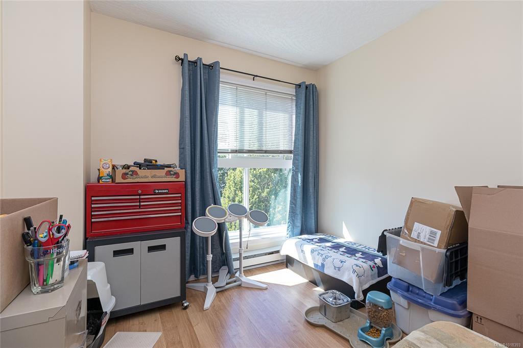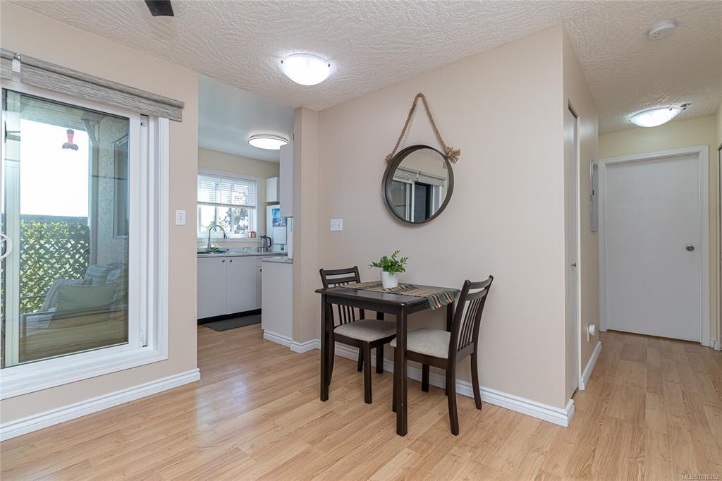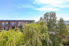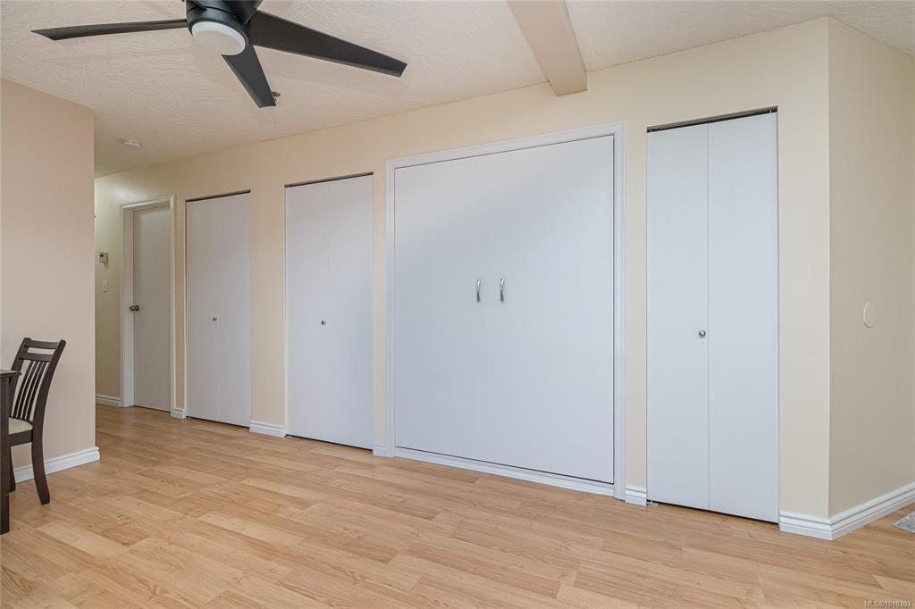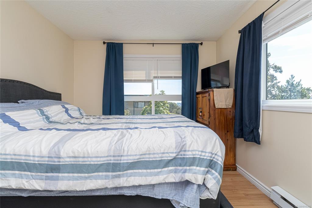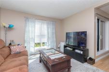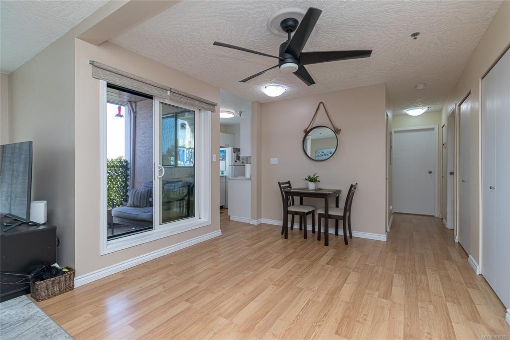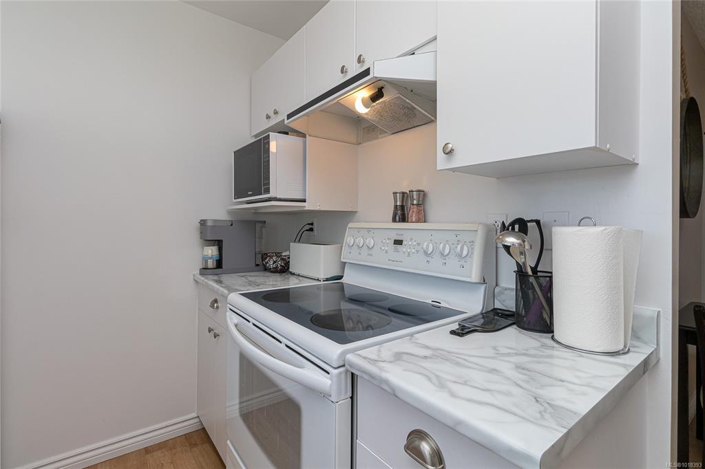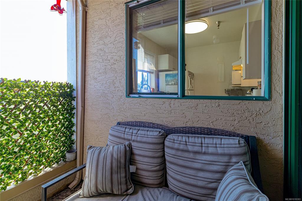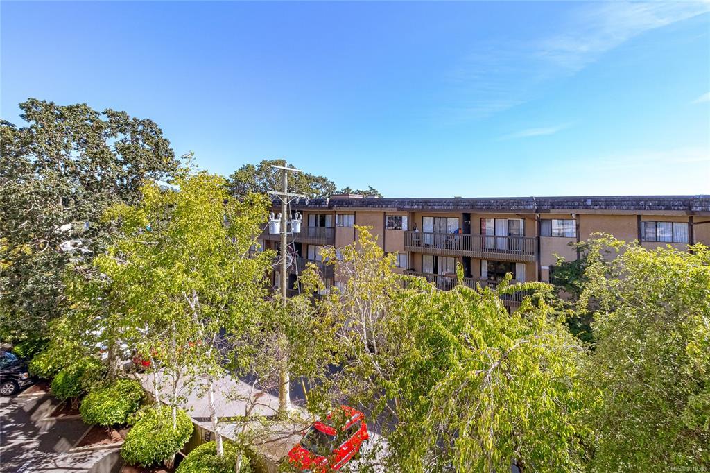Priced to sell!! This stunning 2 bedroom 2 bath condo with low strata fees has been impeccably maintained including fresh new paint, newer appliances, new kitchen counters and newer lighting including a ceiling fan. Custom window coverings throughout as well as all new windows and slider. The owners installed a custom Murphy bed hidden into the wall, great for those extra guests. This beautiful corner suite is in a prime location at the back of the building on an upper floor with tree top views. Just minutes to the heart of Uptown and Mayfair Mall. Easy access to Transit and one of the loveliest family parks including tennis and play area down the hill. This won't last long. Book your showing today!
