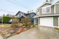 Experience the perfect blend of modern comfort and charm in this exquisite 3-bedroom, 3-bathroom half duplex in North Nanaimo. The spacious living room, with its 9-foot ceilings and large windows, creates a bright and inviting atmosphere, while the deluxe kitchen features custom wood cabinetry, stainless steel appliances, and a versatile island. Step outside to a private, fully fenced backyard—ideal for gatherings or play. Upstairs, the master suite boasts a generous closet and a 4-pc ensuite, complemented by two additional bedrooms, another 4-piece bathroom, and a conveniently located laundry room. The front yard includes a charming kitchen garden, perfect for growing fresh herbs and vegetables. Situated within a 15-min walk to Brannen Lake and close to Pleasant Valley Elementary and the North Nanaimo shopping hub, this home offers easy access to transit, schools, shopping, lakes, and parks—all with no strata fees. All measurements are approximate and should be verified if important.