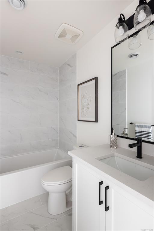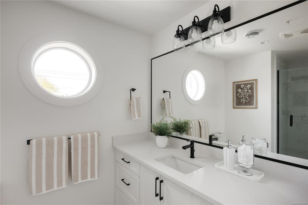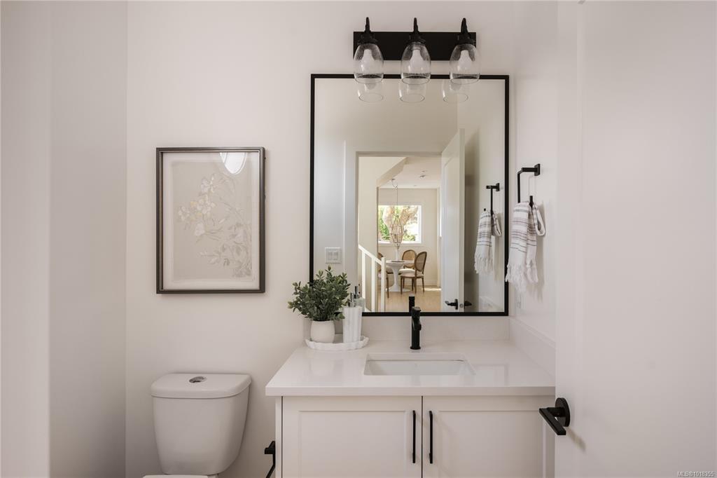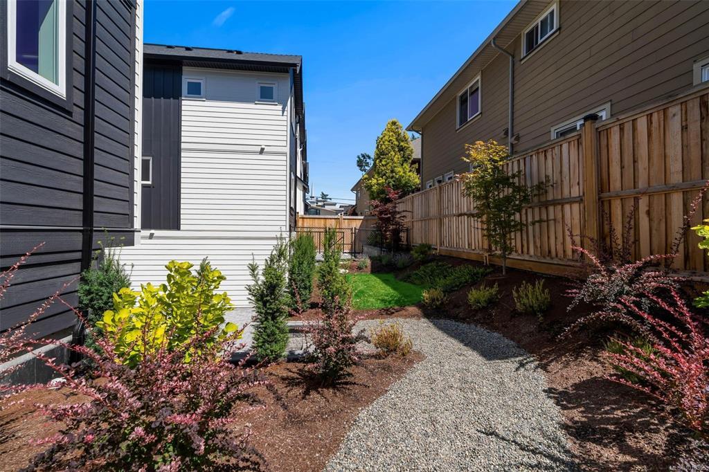 OPEN HOUSE Saturday 1-3PM. Proud to present The Bayside Towns on Fifth - a curated collection of 16 townhomes in Sidney's most desirable neighbourhoods, ROBERT'S BAY. Offering a modern farmhouse aesthetic & varied layouts appealing to young families through to active retirees. This larger end location plan offers 3 spacious bedrooms on the upper level including the primary with ensuite. 4th bedroom or office located on the lower level with its own 3 pce bath. Light wide-plank hardwood throughout entry and main level plus large picture windows that will keep the home light & bright. Custom white kitchen cabinets with quartz counters, generous island & stainless appliances. Efficient heat pump for year round heating and cooling. In-floor heat in all tiled bathrooms. Interlocking brick, fully fenced southeast facing patio with irrigation. Close to beaches, trails and easy walk to Beacon Ave, this is a 12/10 location!
