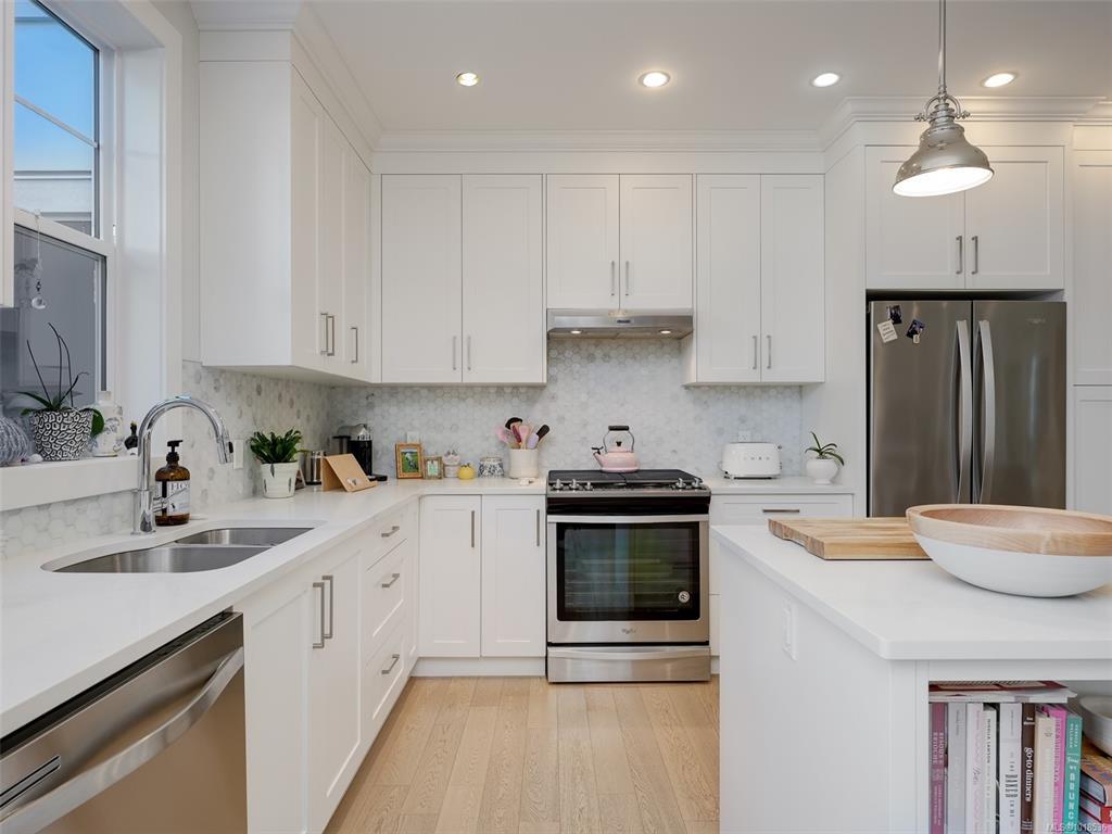 Built in 2017 "The Shaefer on Southgate" presents an exceptional oportunity to enjoy the benefits of this highly sought after Fairfield location, walking distance to Cook Street Village, downtown Victoria and Beacon Hill Park at your doorstep. This character styled development was executed without compromize offering clean sophisticated interiors by the award-winning Sandy Nygaard Design with details inlcuding hardwood floors, quartz counter tops gas fireplace and Stainless appliances. This light and bright garden suite is on the south west corner with 10 foot ceilings and offers a large patio space with direct access to a generous secure private storage room. The attention to detail is evident but beyond that the developer ensured each home be as soundproof as can be. Parking off Harling Lane provides ease of access & security. Comfort and lifestyle you will love coming home to.