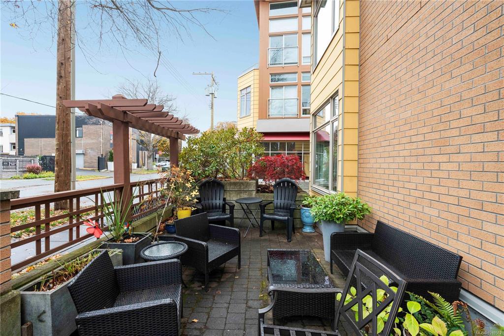 LOCATION, LOCATION, LOCATION. Welcome to unit 105 at the Essencie Verde, a striking corner-unit townhome with two generous bedrooms each with ensuite, around 1,600 sf of well thought out living space, and an open-plan gourmet kitchen with granite counters and gas range, this residence brings the “village-meets-city” lifestyle to life. Large windows allow an abundance of natural light while the common roof top patio soaks up afternoon sun—your private oasis just steps, and we mean steps, from the vibrant Cook Street Village that includes cafés, art galleries, local shops and restaurants, the Dallas Road ocean views, and walking paths of Beacon Hill Park. Secure underground parking, storage and boutique building scale complete the package. Don’t miss your chance to live amidst Victoria’s most walkable and lively neighbourhood.