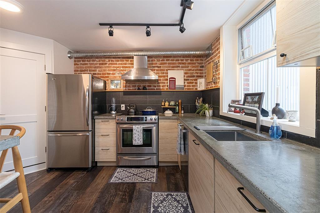 A RARE OFFERING - Experience true urban living in this stunning New York–style loft located in the heart of Old Town. Originally built over 100 years ago, this character-filled home combines heritage charm with modern sophistication. Spanning nearly 1,600 sq ft across two levels, it features exposed brick walls, soaring 16-foot ceilings, large windows that flood the space with natural light, and upgraded flooring throughout. The stylish modern kitchen is perfect for entertaining, while the private deck offers a quiet retreat. Live in comfort year round as there is an efficient Heat Pump System and a bonus with access to a Roof Top. With 3 bedrooms and 2 baths, this rare offering is steps from Chinatown, the Inner Harbour, and Victoria’s best shops and restaurants—offering an unmatched lifestyle in one of the city’s most vibrant neighborhoods.