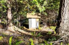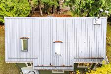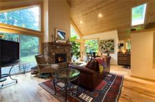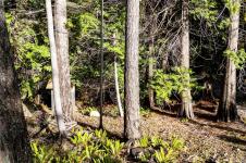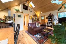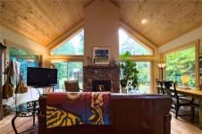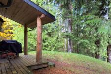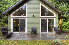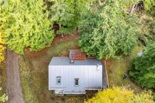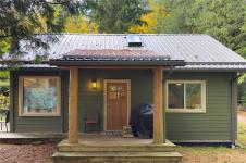This beautifully crafted 2022 custom home offers a modern design that blends comfort with the natural surroundings. Situated on a forested hillside, this half-interest in a 1-acre lot enjoys privacy, sunlight, and a strong connection to nature. The 815 sq ft, 2-bedroom/1-bath home features an open-concept layout, large picture windows, a stunning stone fireplace, and hardwood floors throughout. The main bedroom is conveniently located on the main floor, while the second bedroom or office sits upstairs, offering flexibility for guests or remote work. Step outside to a large, sun-filled south-facing deck. Mature hazelnut trees and a cleared garden area on the hillside invite outdoor living and creativity. The co-owners hold a Tenancy-in-Common agreement and a recent survey that clearly defines each owner’s private 1/2-acre parcel. Still under the 10-year home warranty. Now offered at a newly adjusted price to reflect the water and septic systems.