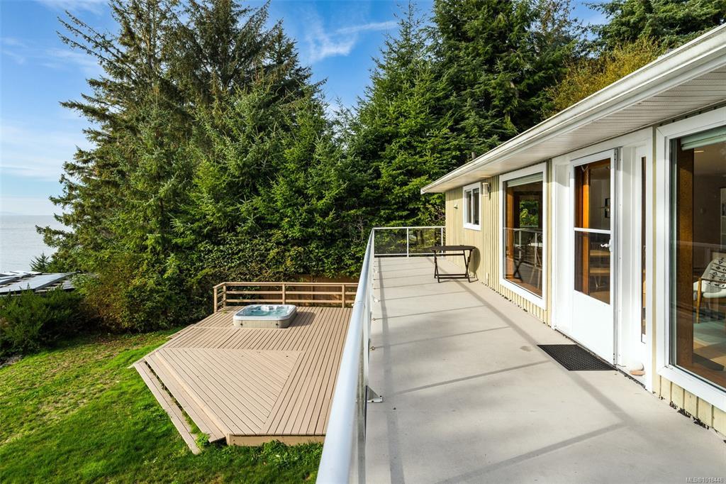 STUNNING OCEANFRONT! This pristine paradise offers an inspired & tastefully updated 4 bed, 3 bath home designed w/the timeless beauty of natural materials & reflecting west coast influences, on a private, sunny, beautifully treed & landscaped .78ac/33,976sf lot overlooking Juan de Fuca Strait & the Olympic Mtns. This rare property offers an open, clean space w/abundant natural light. Inspired by the landscape & coastal elements; the ceramic tile entry seamlessly transitions to bamboo flooring, enhanced by fir moldings & doors, providing visual continuity to the breathtaking views & spectacular sunsets from most interior spaces. Boasting over 2200sf of decking/patio + luxurious hot tub to enjoy year round - perfect for outdoor entertaining. Dbl garage, lots of extra parking, updated septic & generator. Live where the wilderness meets the sea. Whale watching, beachcombing, kayaking, sailing & world class fishing are at your door. Commune w/nature & savour the finest in oceanfront living!