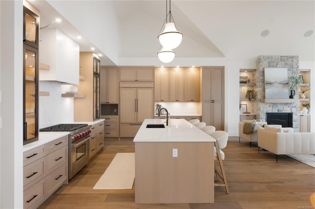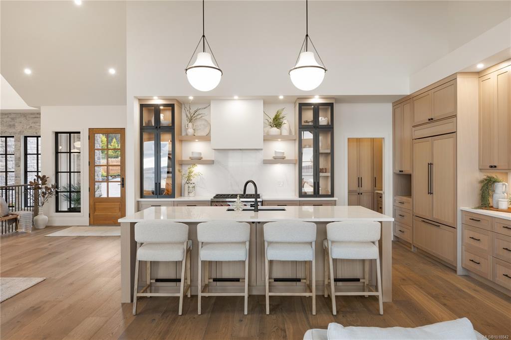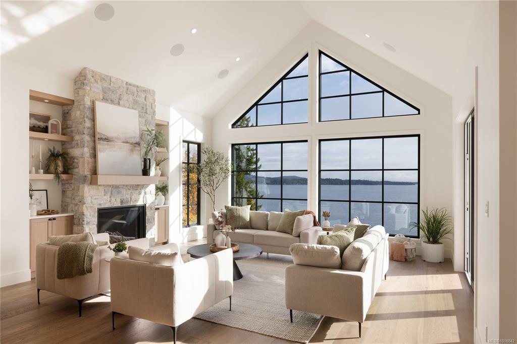 Experience oceanfront living at its finest in this exceptional 5,300 sq. ft. custom residence in Mill Bay. Set on a beautifully landscaped property with sweeping views of the Saanich Inlet, this home blends timeless elegance with modern comfort. The open-concept main floor showcases soaring vaulted ceilings, a stunning great room with stone fireplace, and a chef’s kitchen featuring Wolf and Sub-Zero appliances, quartz surfaces, and a generous island. The primary suite offers breathtaking ocean views, a spa-inspired ensuite, and private balcony. Downstairs, enjoy endless entertainment in the recreation and media rooms, complete with a wet bar and walk-out patio to the oceanfront lawn. Additional features include a gym, office, guest bedrooms with ensuites, and a triple garage. Just 30 minutes from Victoria, with proximity to world-class private schools nearby this extraordinary home captures the very essence of West Coast luxury living.