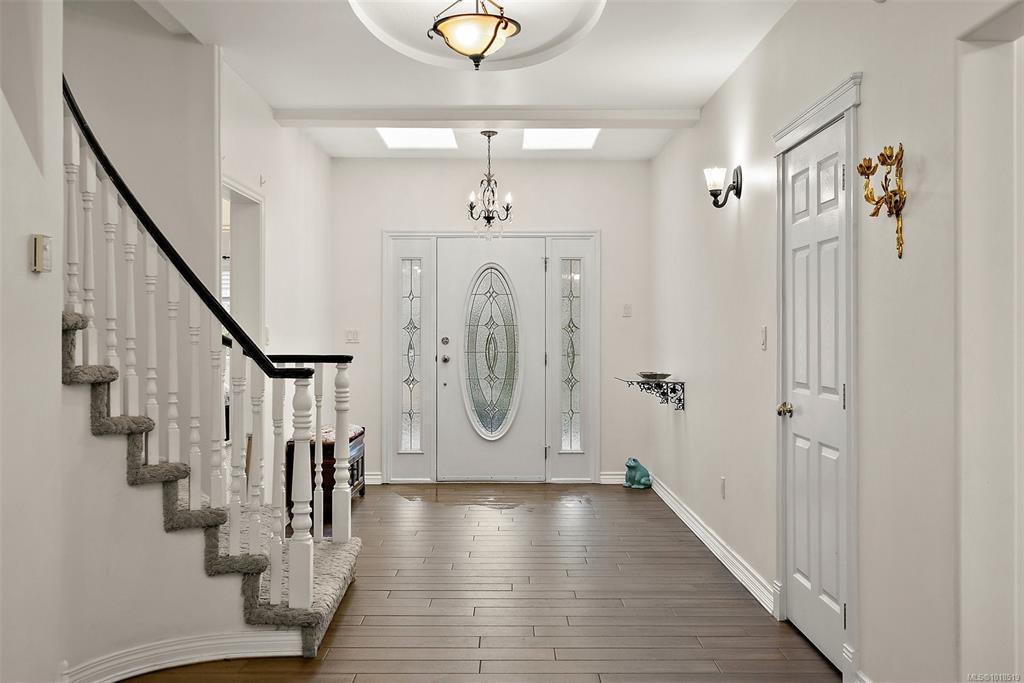 Welcome to a home that blends comfort, style & convenience. Built in 2004, enjoy thoughtful design, accessibility & peaceful setting. Wheelchair accessible main level entry w/ large foyer offers 1-level living: 2 beds, kitchen, living & family rooms on main floor, like a rancher w/ bonus space upstairs. Primary bed w/ large walk-in & ensuite. Elegant touches: pillar accents & cove ceilings in foyer & living rm. Main level has radiant in-floor heat, a gas fireplace & a large dining rm perfect for entertaining! Upstairs: 2 beds & renovated 4-pce bath. Spacious rooms, central vac. Private, low-maint backyard w/ apple tree. Walk to Chemainus amenities, oceanfront park & Theatre, easy Trans Canada Trail access. Rare find: elegance, comfort & prime location.