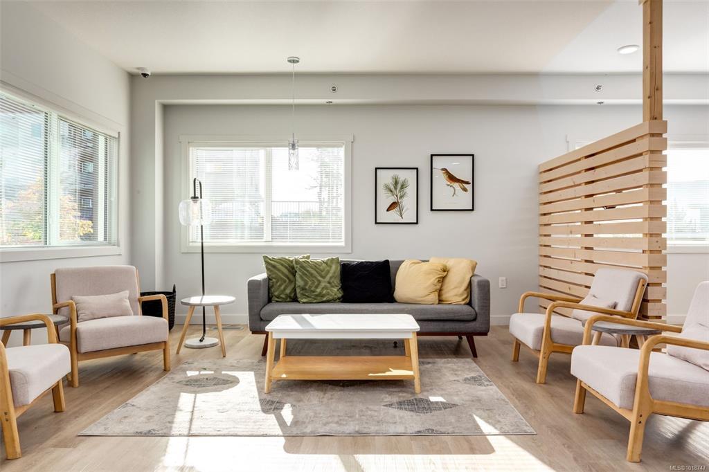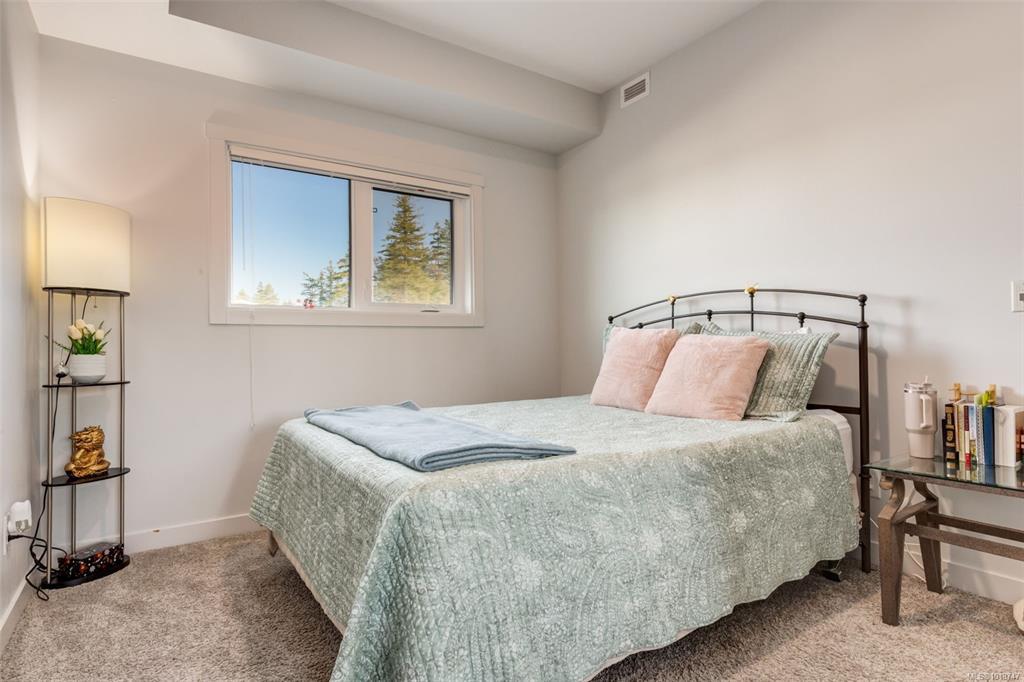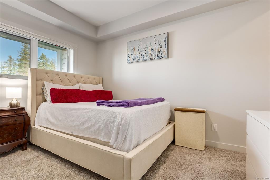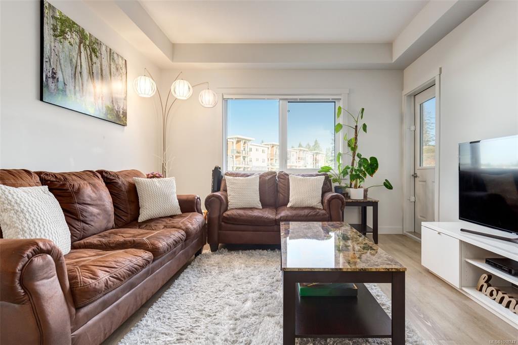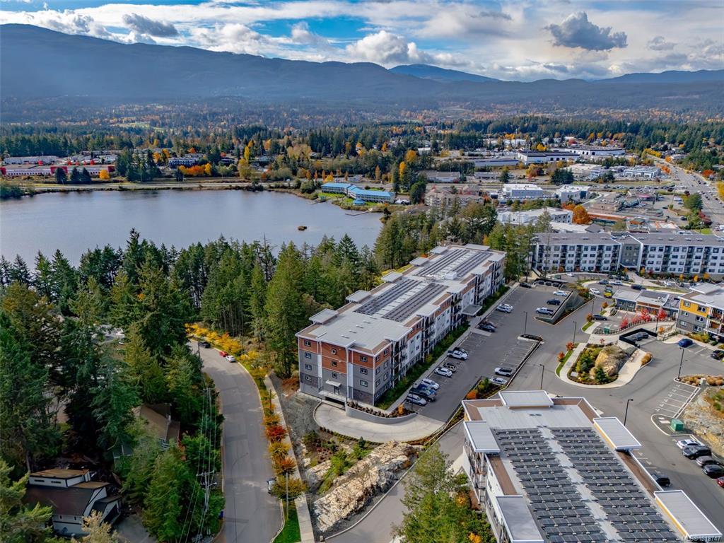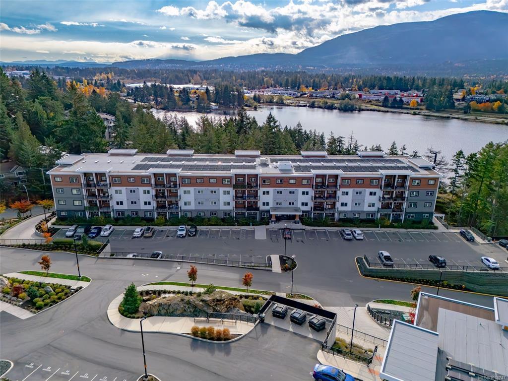 Welcome to this stunning home in Lakeview Terrace! This Built Green Platinum certified 2-bedroom, 2-bathroom residence offers a fantastic vantage point with sweeping mountain views over North Nanaimo. Completed in 2022, this modern home prioritizes sustainability with roof-installed solar panels, a heat recovery ventilation system, and in-unit EV charger capability. The bright interior boasts a contemporary design featuring up-to-ceiling cabinetry, quartz countertops, and modern fixtures. Maximizing privacy, the two spacious bedrooms are thoughtfully situated on opposite sides of the unit. You'll have the convenience of one underground parking stall with secure bike storage. Walkability to Long Lake and North Town Centre for all your shopping and dining needs. Residents benefit from premium complex amenities, including a stylish clubhouse lounge, a fully equipped gym, and a yoga studio. Perfect for both families and investors. (Measurements and data approximate; verify if important.)