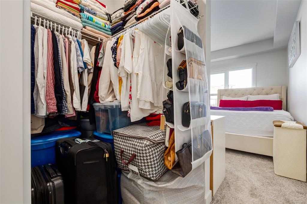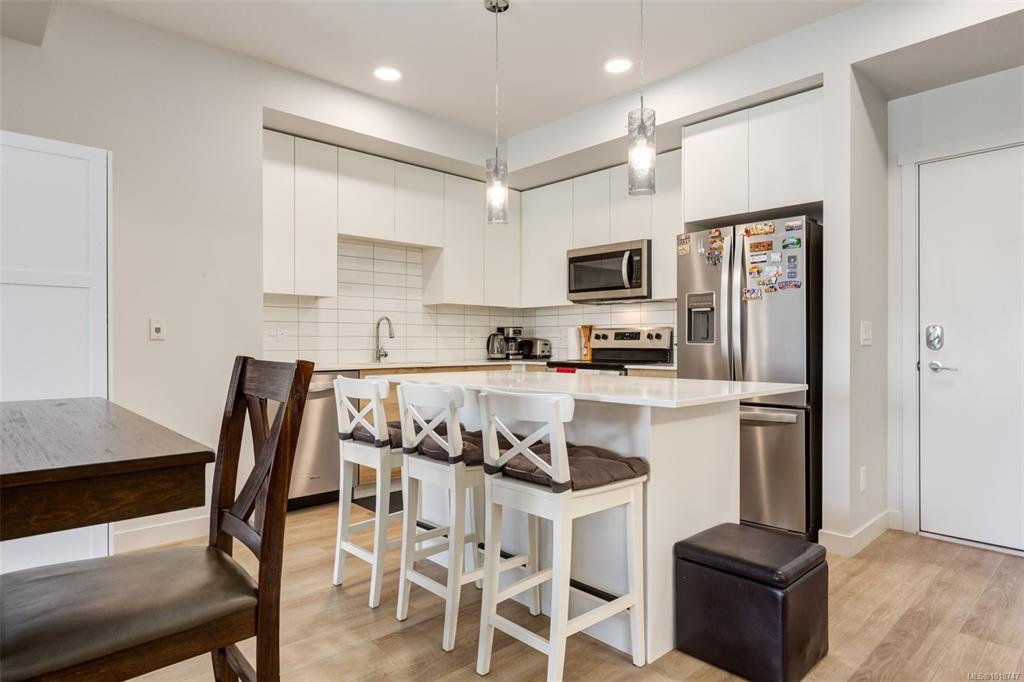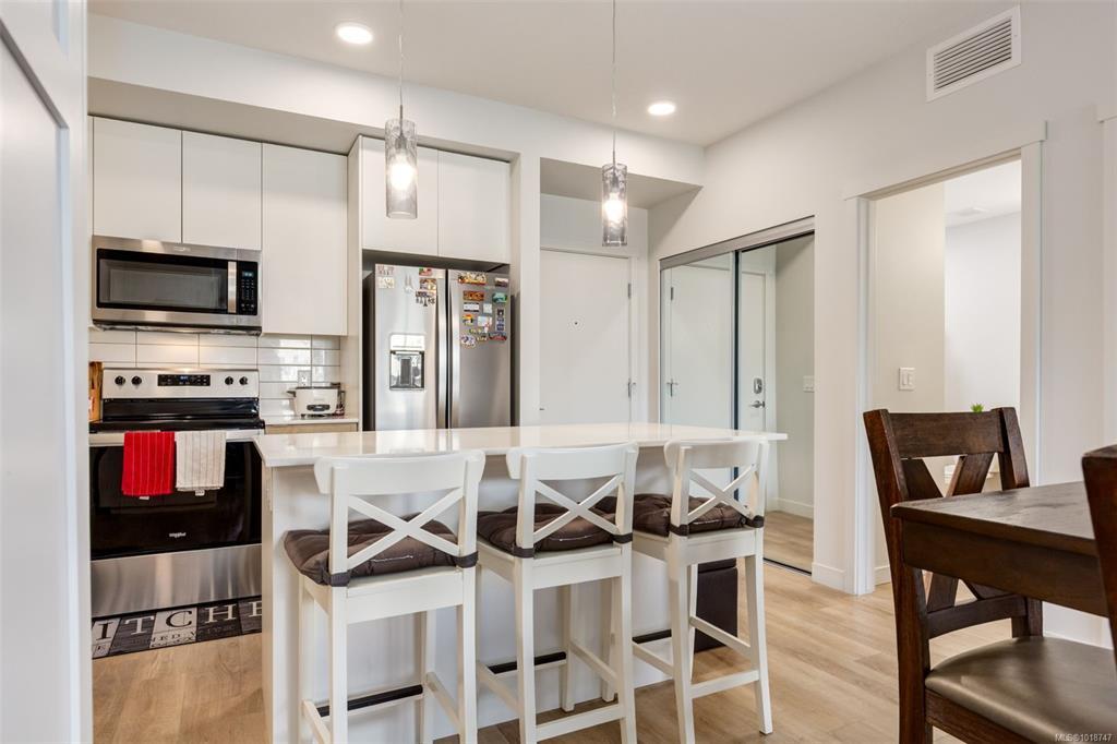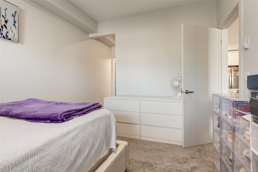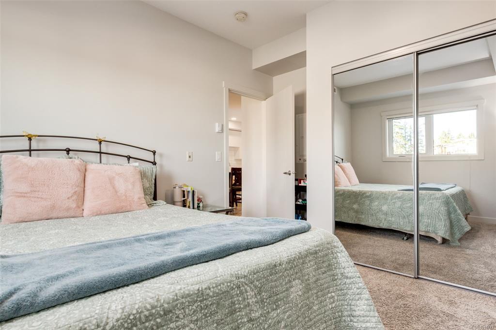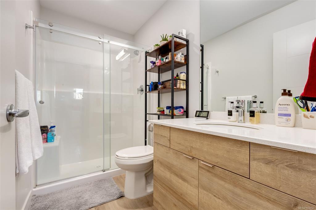 Welcome to this stunning home in Lakeview Terrace! This Built Green Platinum certified 2-bedroom, 2-bathroom residence offers a fantastic vantage point with sweeping mountain views over North Nanaimo. Completed in 2022, this modern home prioritizes sustainability with roof-installed solar panels, a heat recovery ventilation system, and in-unit EV charger capability. The bright interior boasts a contemporary design featuring up-to-ceiling cabinetry, quartz countertops, and modern fixtures. Maximizing privacy, the two spacious bedrooms are thoughtfully situated on opposite sides of the unit. You'll have the convenience of one underground parking stall with secure bike storage. Walkability to Long Lake and North Town Centre for all your shopping and dining needs. Residents benefit from premium complex amenities, including a stylish clubhouse lounge, a fully equipped gym, and a yoga studio. Perfect for both families and investors. (Measurements and data approximate; verify if important.)