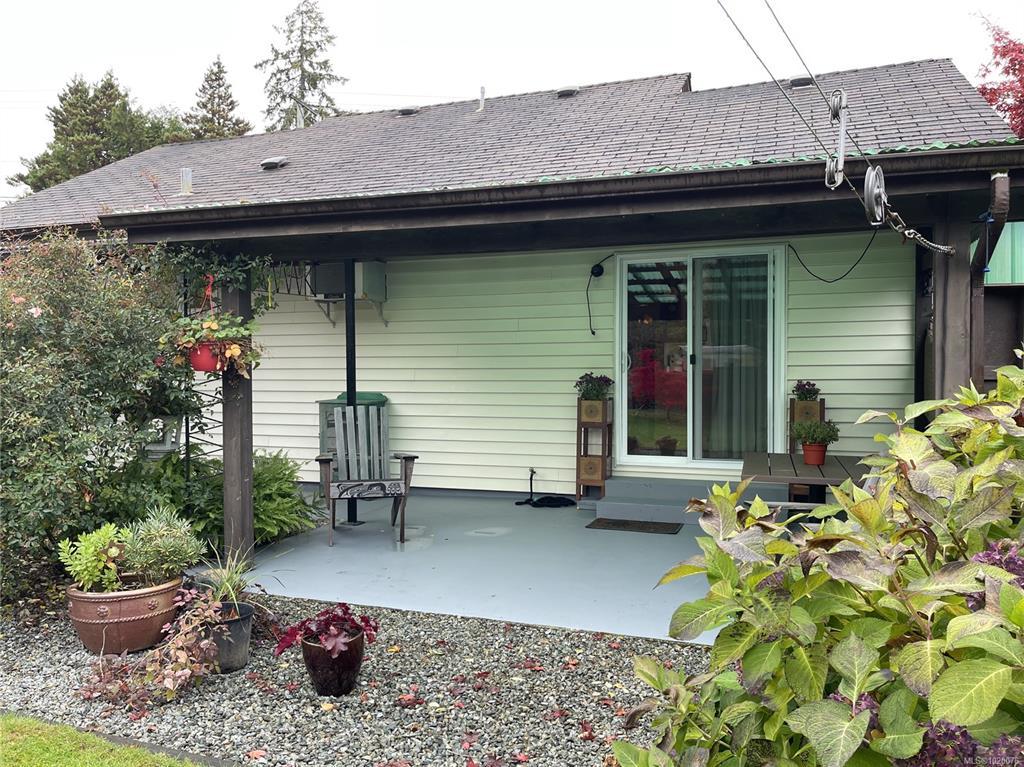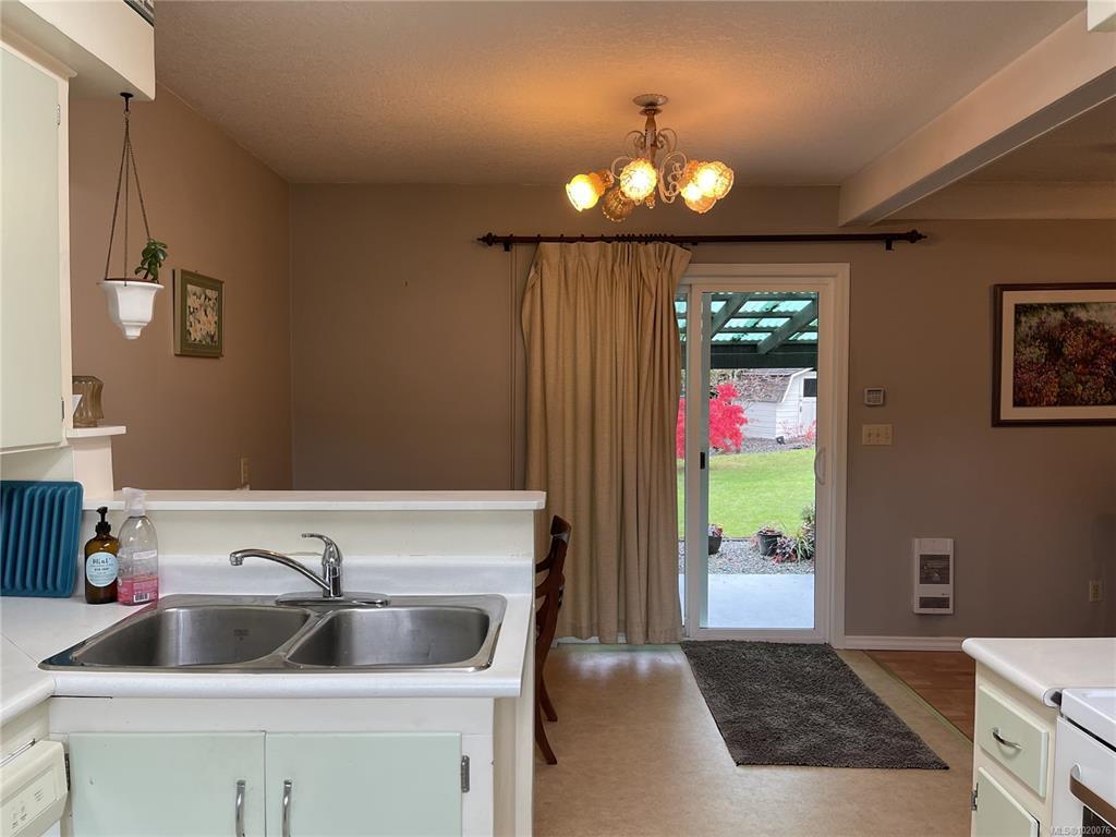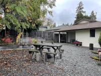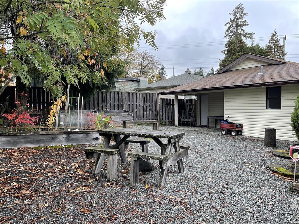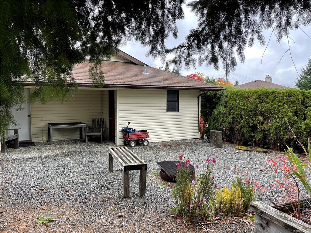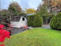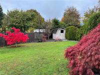 Discover this tidy and welcoming rancher, perfectly situated on a spacious, beautifully landscaped lot. The bright living room offers a comfortable place to relax, while the eat-in kitchen features a breakfast bar and flows effortlessly into a versatile dining or family room — ideal for gatherings and everyday living. Two bedrooms and an updated 4-piece bathroom round out the home. Step outside to the covered patio and enjoy the fully fenced yard adorned with mature shrubs, ornamental trees, and a private gravel area perfect for cozy evening fires. A garden shed provides extra storage for tools and outdoor gear. The detached garage includes a bonus family room with a 3-piece bathroom, offering flexible space for guests, hobbies, or a home office. With ample parking, including room for an RV, this property combines functionality and charm in one delightful package. Come and see this well-cared-for home — it’s ready to welcome you! All measurements are approx., verify if important.