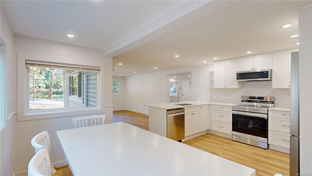 This beautifully renovated home is a rare gem that offers exceptional space, flexibility, and privacy. With 3 bedrooms and 3 bathrooms, plus a separate flex room with its own entrance, it’s perfect for a home office, gym, or even a fourth bedroom. One of the bedrooms is self-contained with a private entrance and bathroom—ideal for guests or family members seeking independence. The entire home has been thoughtfully updated from top to bottom, featuring new windows and doors, a heat pump for year-round comfort, quartz countertops, brand new appliances, and high-quality finishes throughout. The open-concept layout fills the living and kitchen areas with natural light, and the primary bedroom includes a spacious ensuite. A generous pantry and laundry room add to the functionality. Located on a double lot, quiet dead-end road with only a neighbor on one side, this move-in-ready home offers both tranquility and convenience. Just a short walk to Shawnigan lakefront recreation and amenities.